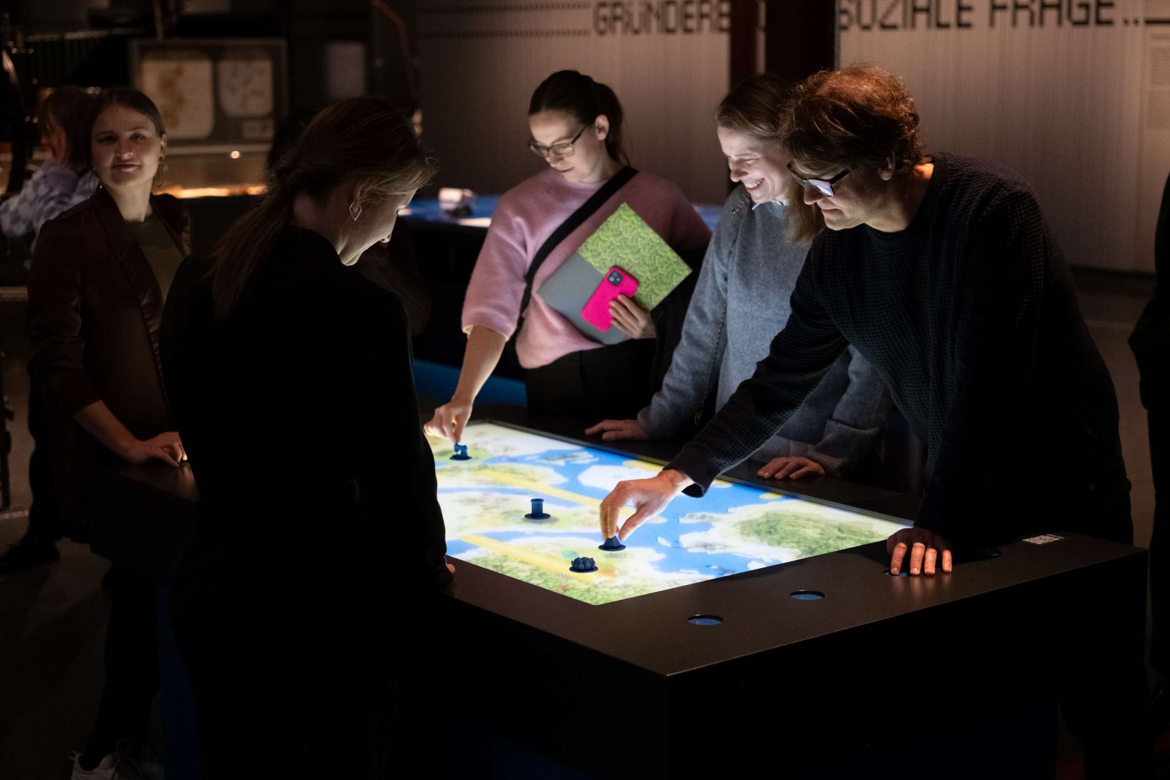 Beim digitalen Spieltisch „Shirt Quest“ im tim entscheiden allein die Spielerinnen und Spieler, welche Interessen sich letztlich durchsetzen. So entsteht ein dynamisches Spielerlebnis, das die Herausforderungen der globalen Textilindustrie verständlich und erfahrbar macht.