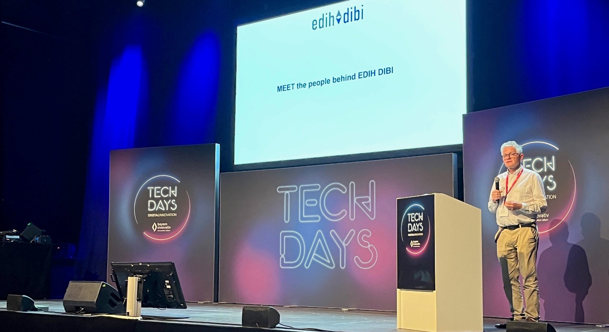 Die THA ist Teil der European Digital Innovation Hubs (EDIH). Zusammen mit weiteren Instituten aus ganz Bayern präsentierte die Hochschule ihr Dienstleistungsangebot im Bereich KI unter der erstmals vorgestellten Initiative Digital Innovations for Bavarian Industry (DIBI). Die Partner der Initiative präsentierten den Ansatz von „test before invest“ im Rahmen auf der interaktiven Bühne der TechDays.