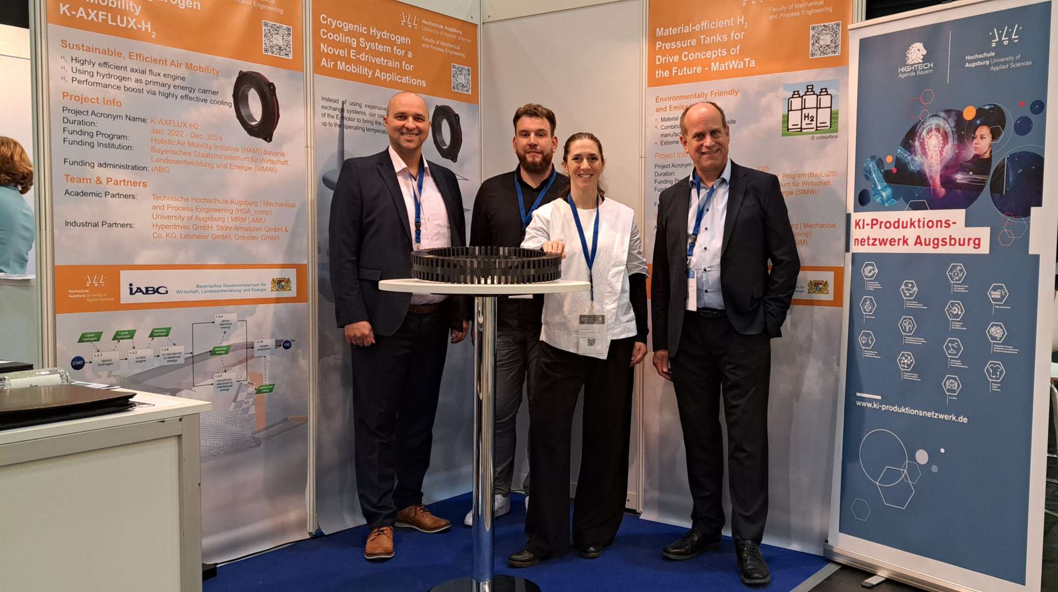 Die Technische Hochschule Augsburg stellte auf der AIRTEC 2023, der internationalen und europaweit führenden Messe und Konferenz für die Luft- und Raumfahrt, Air Mobility und New Spaces vom 25. bis 27.10.2023 Ergebnisse aus den Projekten K-AXFLUX-H2 und MatWaTa vor. Im Rahmen des Kongress-Programms referierte Prof. Dr.-Ing. André Baeten, Experte für Lightweight Construction, Composites, Aeronautics and Hydrogen Technology, am 27.10.2023 zum Thema: „Kryogenes Wasserstoffkühlsystem für ein neues elektrisches Antriebssystem“.