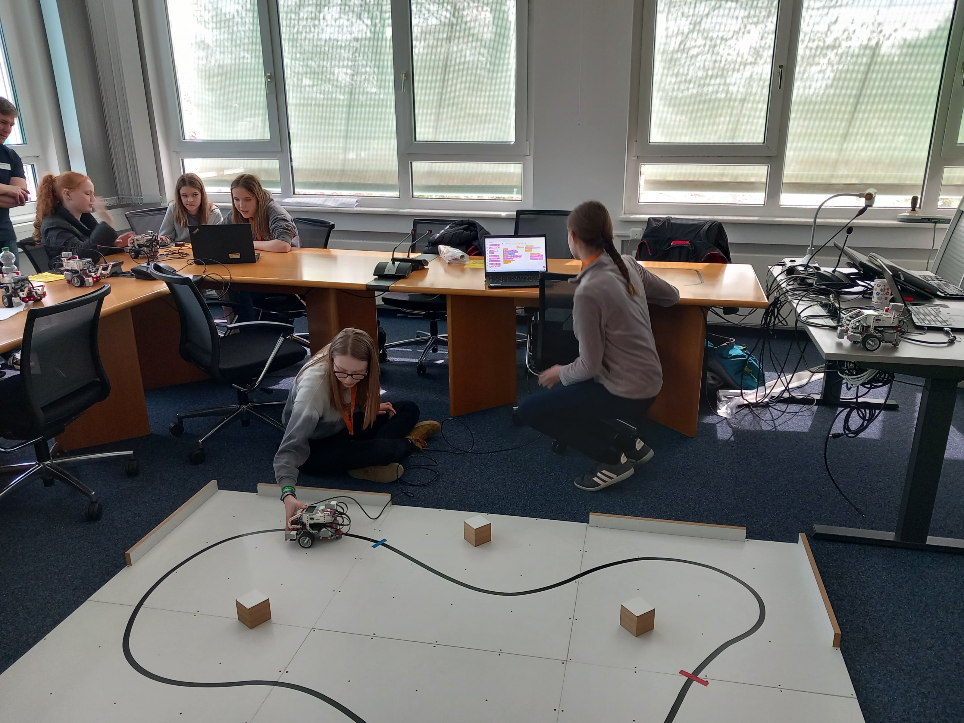In der Fakultät für Informatik, der Welt der Programmierung, fanden sich dieses Jahr 14 begeisterte Schülerinnen ein. Der erste Programmpunkt bestand aus einer Lego-Roboter-Rallye, welche die Teilnehmerinnen durch eigene Programme zum Leben erwecken und steuern konnten. Auch im Programmierworkshop durften die Girls nach ihren individuellen Wünschen ihr eigenes Spiel programmieren und ausprobieren.