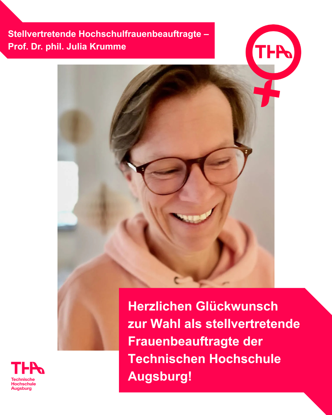 Prof. Dr. Julia Krumme wurde wiedergewählt als stellvertretende Frauenbeauftragte der Hochschule. Des Weiteren hat jede Fakultät eine*n eigene*n Frauenbeauftragte*n inklusive Stellvertretung. Wer dieses Amt an eurer Fakultät hat, findet ihr auf der unserer Webseite im Bereich Fakultätsbeauftragte.