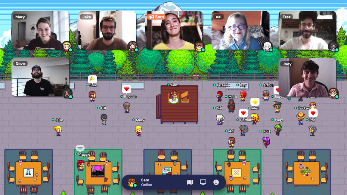 Gather.town ist eine Online-Plattform, die virtuelle Veranstaltungen und soziale Interaktionen ermöglicht. Die Teilnehmenden werden durch personalisierte Avatare repräsentiert, die in einem interaktiven, kartenbasierten Raum miteinander interagieren können. Der Raum kann einer realen Umgebung ähneln, wie zum Beispiel einer Konferenzhalle oder einem Klassenzimmer. Auch thematische Welten können erstellt werden, die den Anlass der Veranstaltung widerspiegeln.