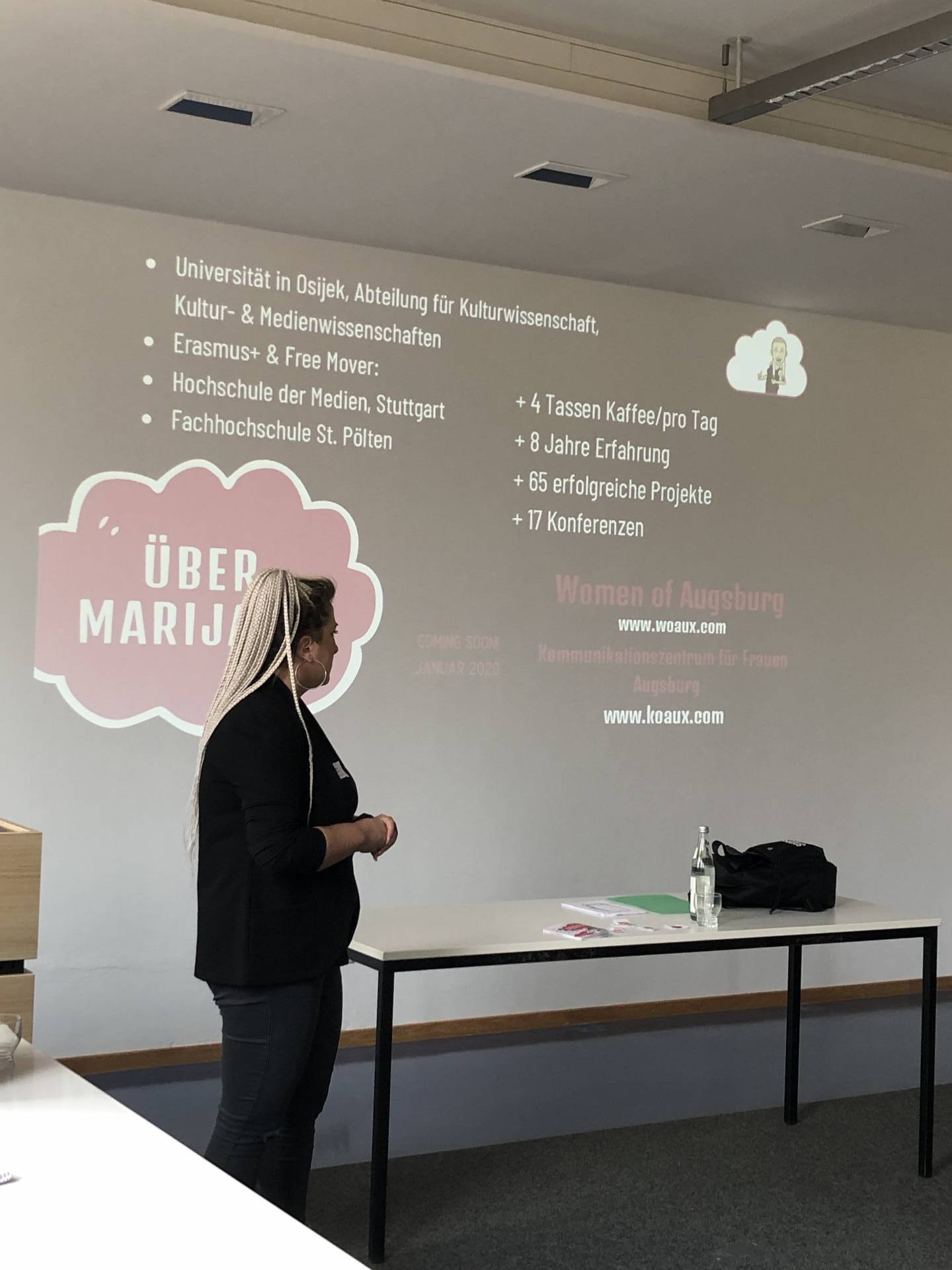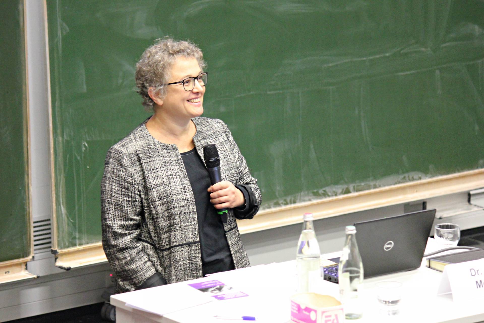 Barbara Pichler, Koordinatorin für Gender Mainstreaming bei der Stadt Augsburg drückte zu Beginn der Veranstaltung ihre Freude darüber aus, dass diese Veranstaltung in den Räumen der Hochschule stattfinden kann und die LAG Mädchenpolitik einen Fachtag zu diesem wichtigen Thema in Augsburg veranstaltet.