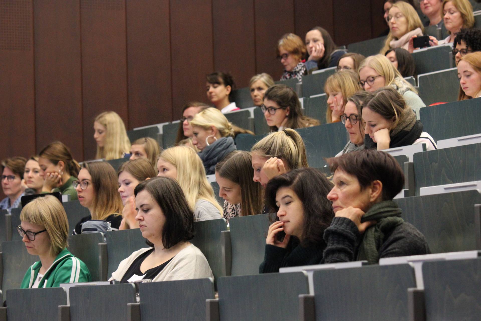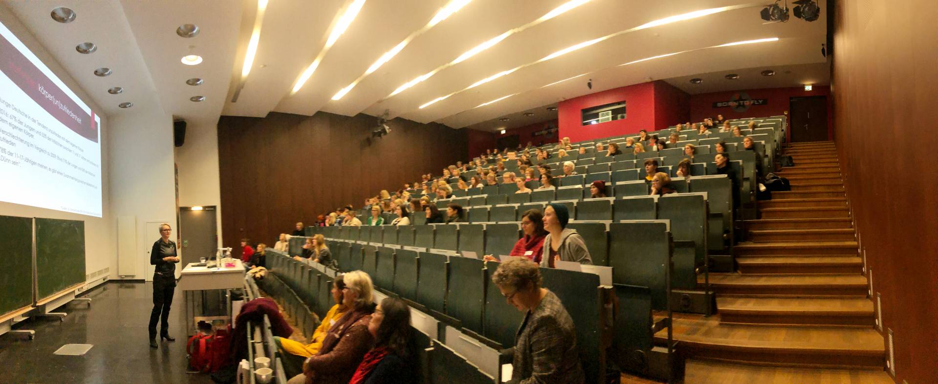 Die Referentin Dr. Kathy Meßmer verdeutlichte in ihrem Vortrag: „Wir befinden uns in einer Gesellschaft, die einerseits vorgibt, dass Selbstakzeptanz extrem wichtig ist und gleichzeitig die Notwendigkeit zur Selbstoptimierung deutlich macht. Ganz nach dem Motto: Alles ist möglich! Jede kann alles erreichen!“. Was „schön“ ist, würden dabei vor allem die Medien vermitteln. Mädchen in der Pubertät wünschten sich größere Brüste, Fingernagelverlängerungen und durchliefen häufig bereits Diäten und andere Praktiken für den vermeintlich „richtigen Körper“. Soziale Netzwerke und Medien würden dabei neue Zwänge schaffen und gleichzeitig aber auch Freiheits- und Entfaltungsräume bieten, indem sie Mädchen und jungen Frauen vielfältigere und „bodypositive“ Körper und Geschlechterbilder anbieten.