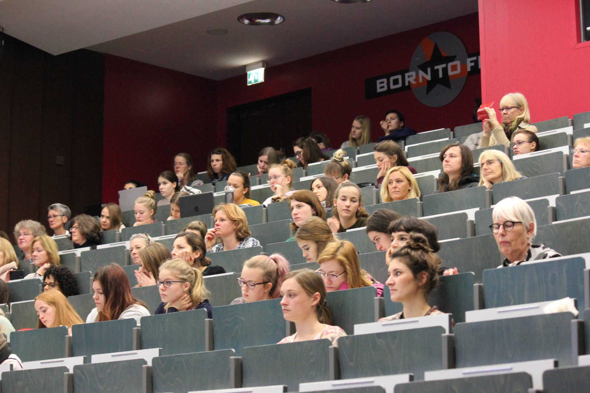 Mit dieser Thematik setzten sich auch 50 Erstsemesterstudierende des Bachelorstudiengangs Soziale Arbeit an der Hochschule Augsburg auseinander. Als Teil der Vorlesung „Sozialpsychologie“ bei Prof. Dr. Mahena Stief nahmen sie am Vortrag von Soziologin Dr. Kathy Meßmer teil: „Von der ,Freiheit‘, schön sein zu müssen. Über Schönheitsideale, PR und feministische Rhetoriken“. Mit vielen Beispielen und aktuellen Zahlen widmete sich die Referentin aktuellen Schönheitsidealen und deren Vermarktung. Dabei beschrieb sie das Ideal des kontrollierten und gestählten Körpers, das auch vor der Vagina nicht Halt mache, und erörterte, wie die Anbieter von Schönheitschirurgie ihre Verfahren fast als feministische Errungenschaft darstellen würden und was sich daraus lernen lasse. Die Anzahl an Schönheitsoperationen in Deutschland steige stetig. Die Anbieter verkaufen diese, nach Ansicht von Meßmer, als Möglichkeit der Selbstbestimmung.