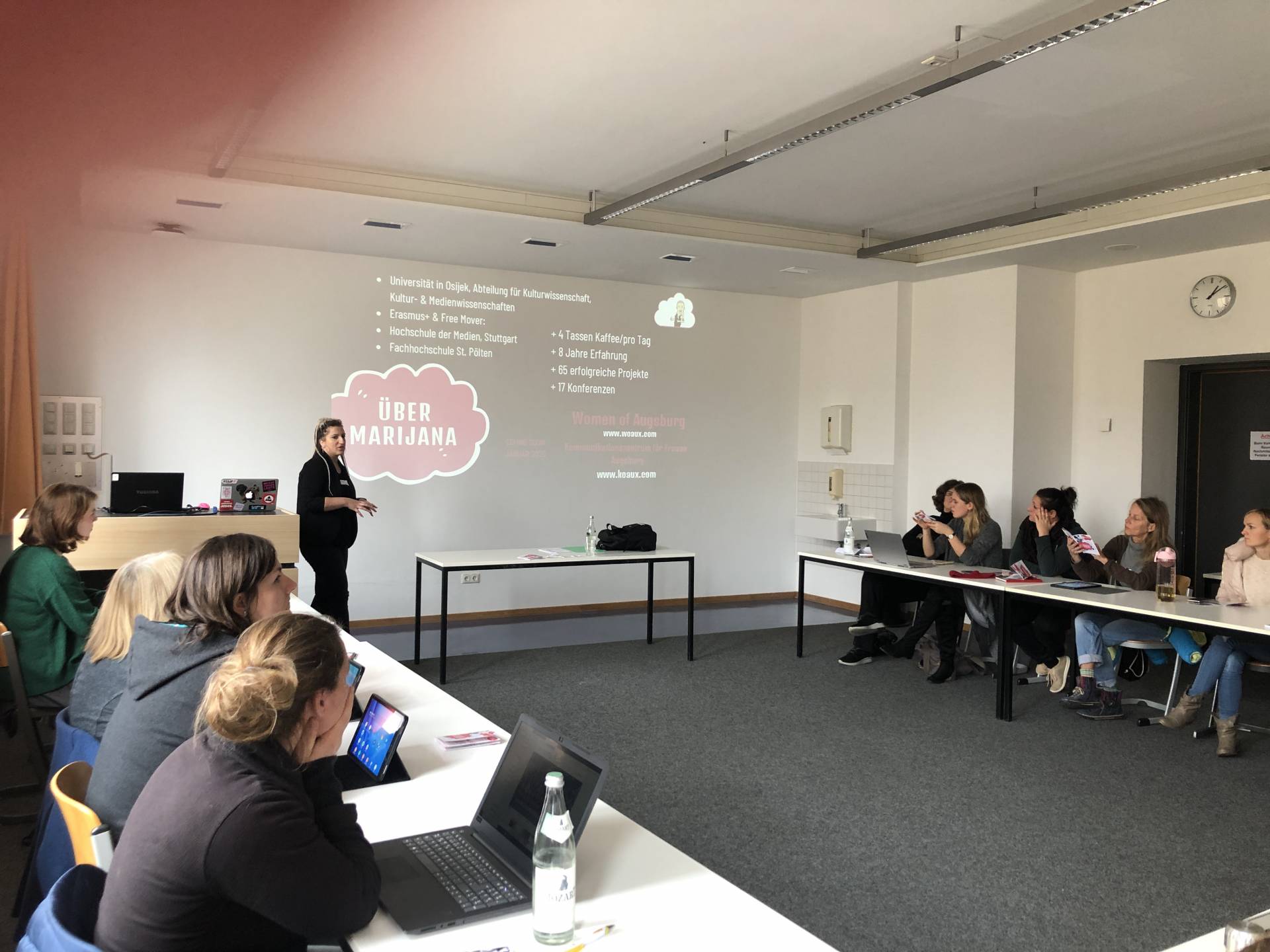 Die Kultur- und Medienwissenschaftlerin Marijana Bicvic bot einen Workshop an unter dem Titel „Für Änderung in der Gesellschaft – klick zweimal!“. Sie erklärte: „Unsere Verantwortung ist es, aktiv auf Mädchen zuzugehen und Probleme direkt anzusprechen.“ Es gehe vor allem darum, junge Frauen zu einem sachgerechten, selbstbestimmten, kreativen und gleichzeitig kritisch sowie sozial verantwortlichen Umgang mit Medien zu befähigen. Im Workshop wurden Dimensionen einer kritischen Mediennutzung definiert und verschiedene Onlineformate durchleuchtet und ausprobiert.