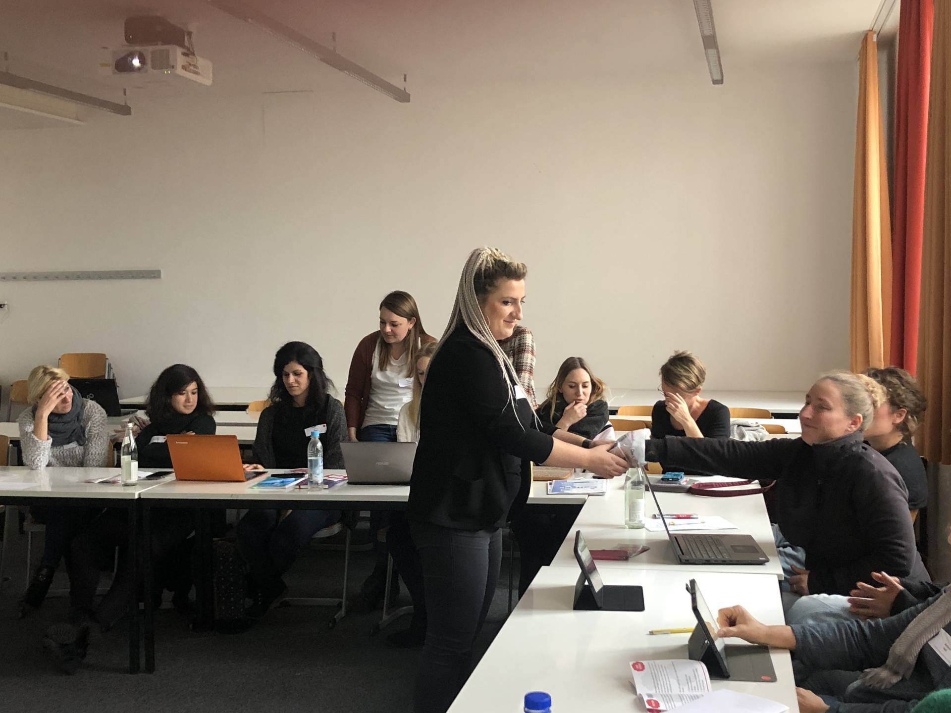 In den Workshops am Nachmittag ging es unter anderem schließlich konkret darum, in der Jugendarbeit Facebook, Instagram und andere Apps zusammen mit Mädchen auch selbst zu nutzen, oder auch Themen wie „Hate Speeches“ oder Mobbing in der pädagogischen Arbeit anzusprechen. Es wurden Projekte diskutiert, mit denen Medienkompetenz bei Mädchen gefördert werden könnte.