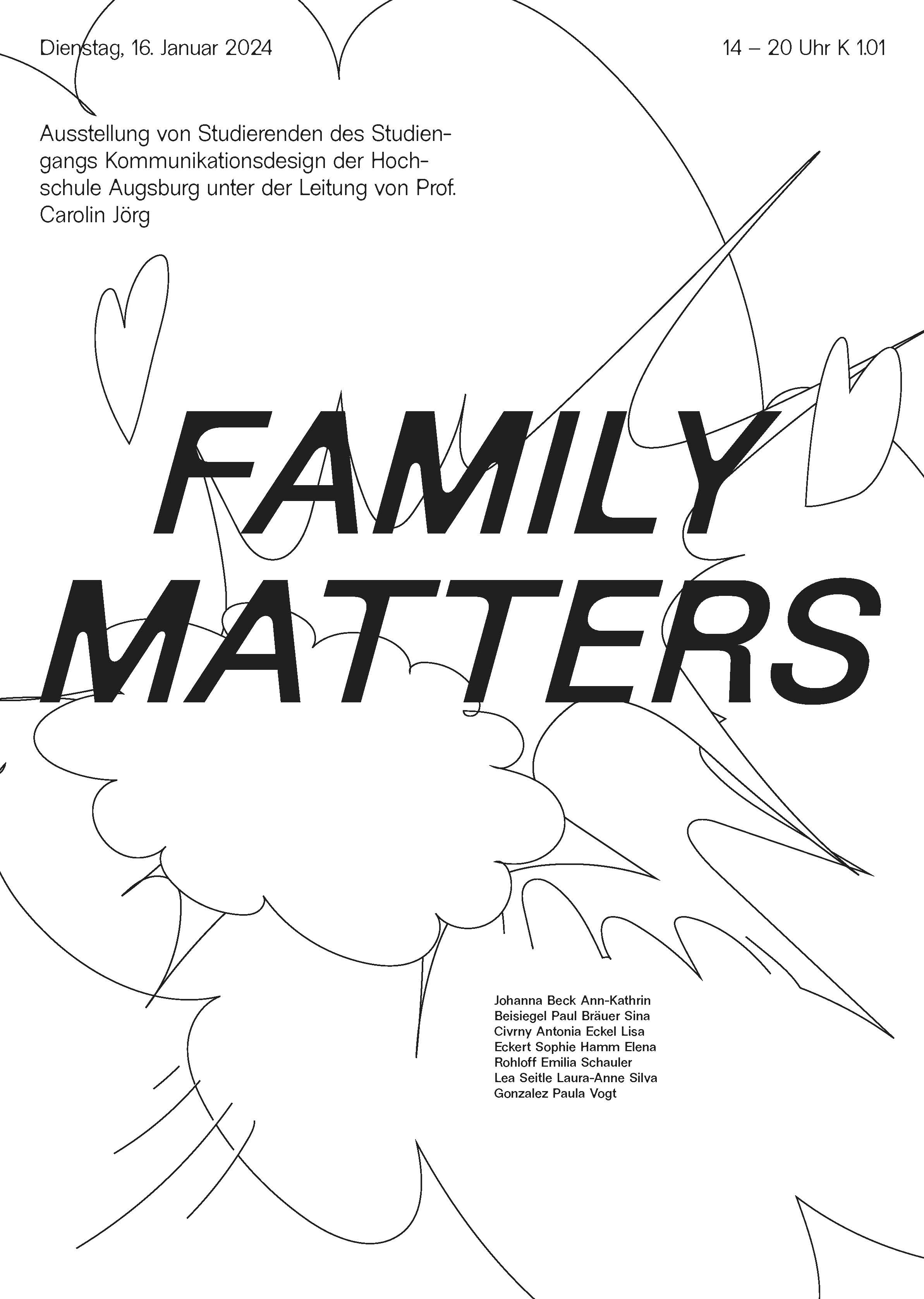 Ausstellung von Studierenden des Studiengangs Kommunikationsdesign der Fakultät Gestaltung, Hochschule Augsburg, unter der Leitung von Prof. Carolin Jörg