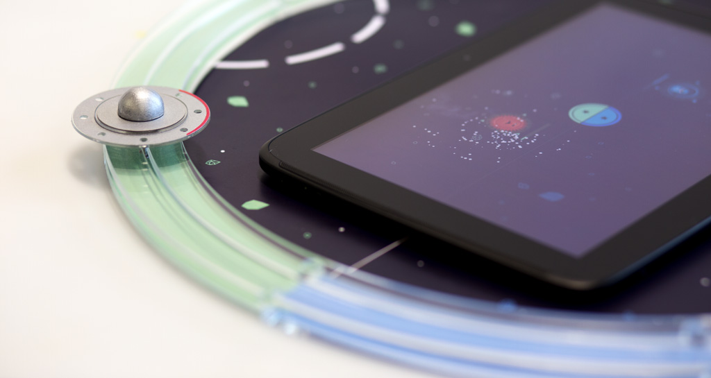 Die Lokalisierung erfolgt durch einen Magneten im UFO, der über den Kompass-Sensor eines Tablets oder Smartphones erkannt wird. Die Schiene ist universell einsetzbar und als Grundlage einer Spieleserie denkbar, bei der sich jeweils Fahrzeug, Spielplan und die digitale Ausgabe auf dem Tablet ändern.