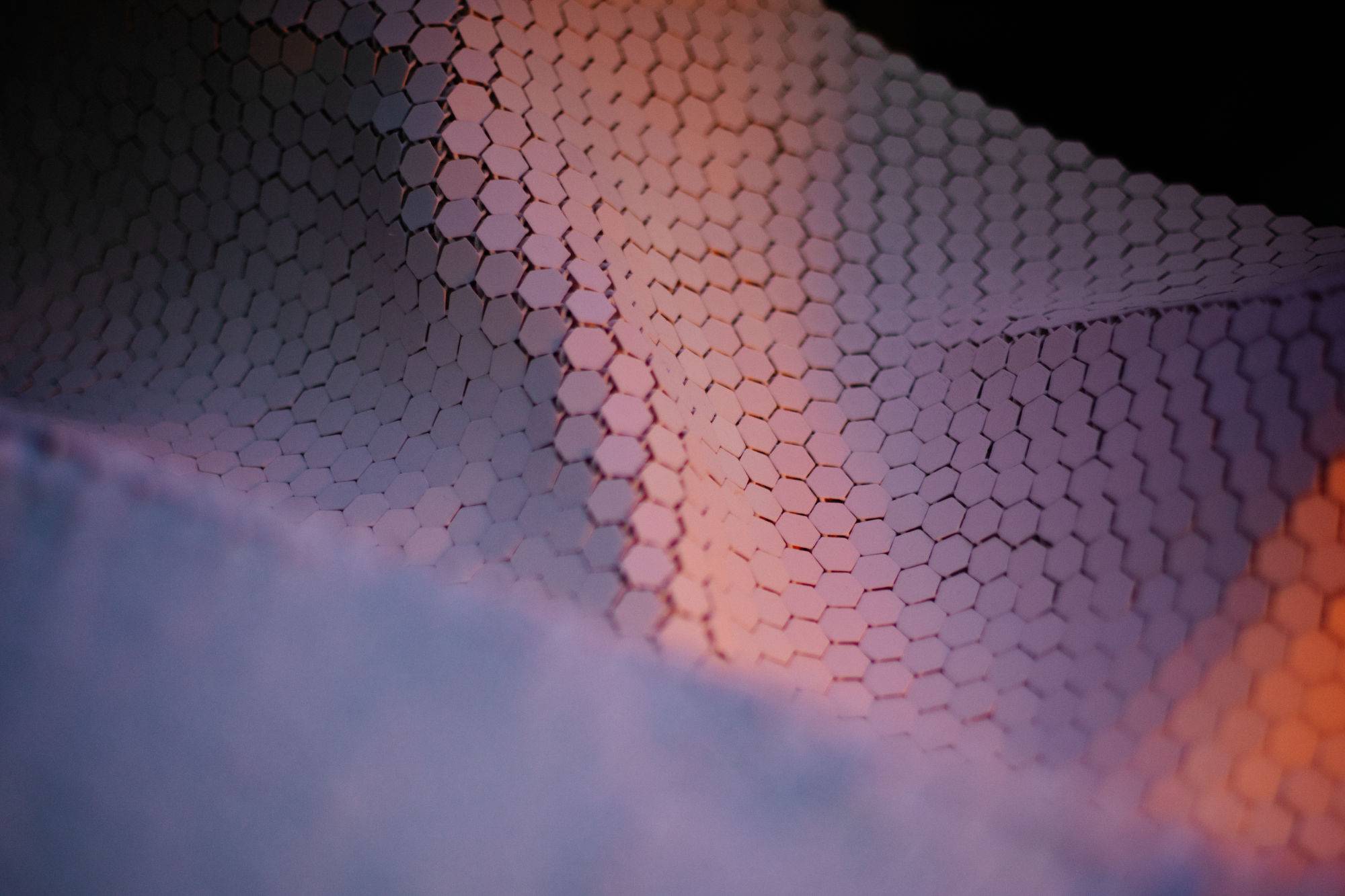 Gleich mehrere außergewöhnliche Konzepte waren das Resultat dieses Verfahrens: Bei „Shifting Sink“ handelt es sich um ein interaktives und kinetisches Waschbecken, das je nach eingegebenen Stimmungsparametern unterschiedliche Formen annehmen kann. Die zahlreichen wabenförmigen Komponenten, aus denen das Becken besteht, stammen aus einem 3D-Drucker und fordern zum unmittelbaren Berühren auf.