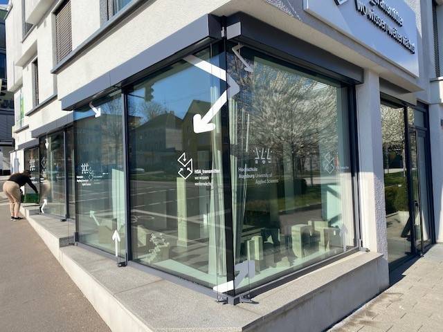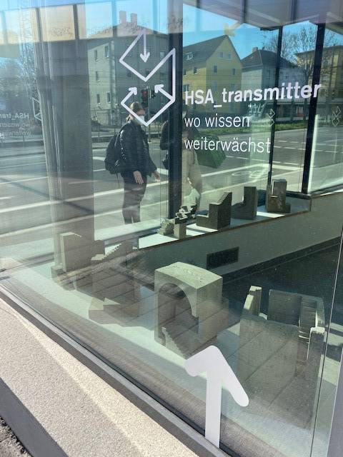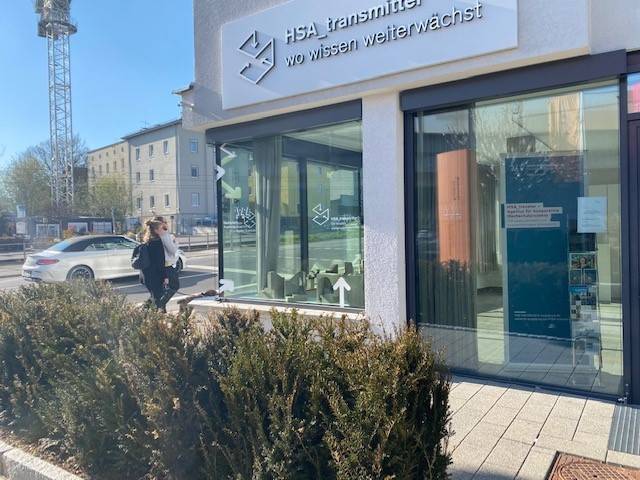 Die Ausstellung im HSA_transmitter an der Haunstetter Straße 27 in Augsburg kann dank einer großen Fensterfläche rund um die Uhr von außen besichtigt werden. Der Innovationsraum HSA_transmitter der Hochschule Augsburg – wo Wissen weiterwächst – gibt Raum, um sich von der Ausstellung für weitere Zukunftslösungen inspirieren zu lassen.
