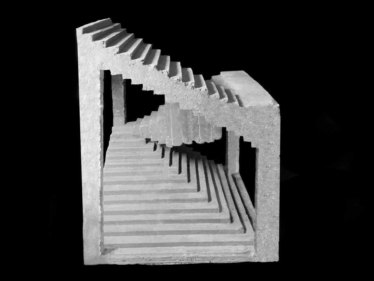 Die Treppenstelen „Positiv-Negativ” sind Arbeiten von Architektur-Studierenden des Bachelorstudiengangs Architektur im Fach Entwerfen bei Prof. M.Arch. Katinka Temme: