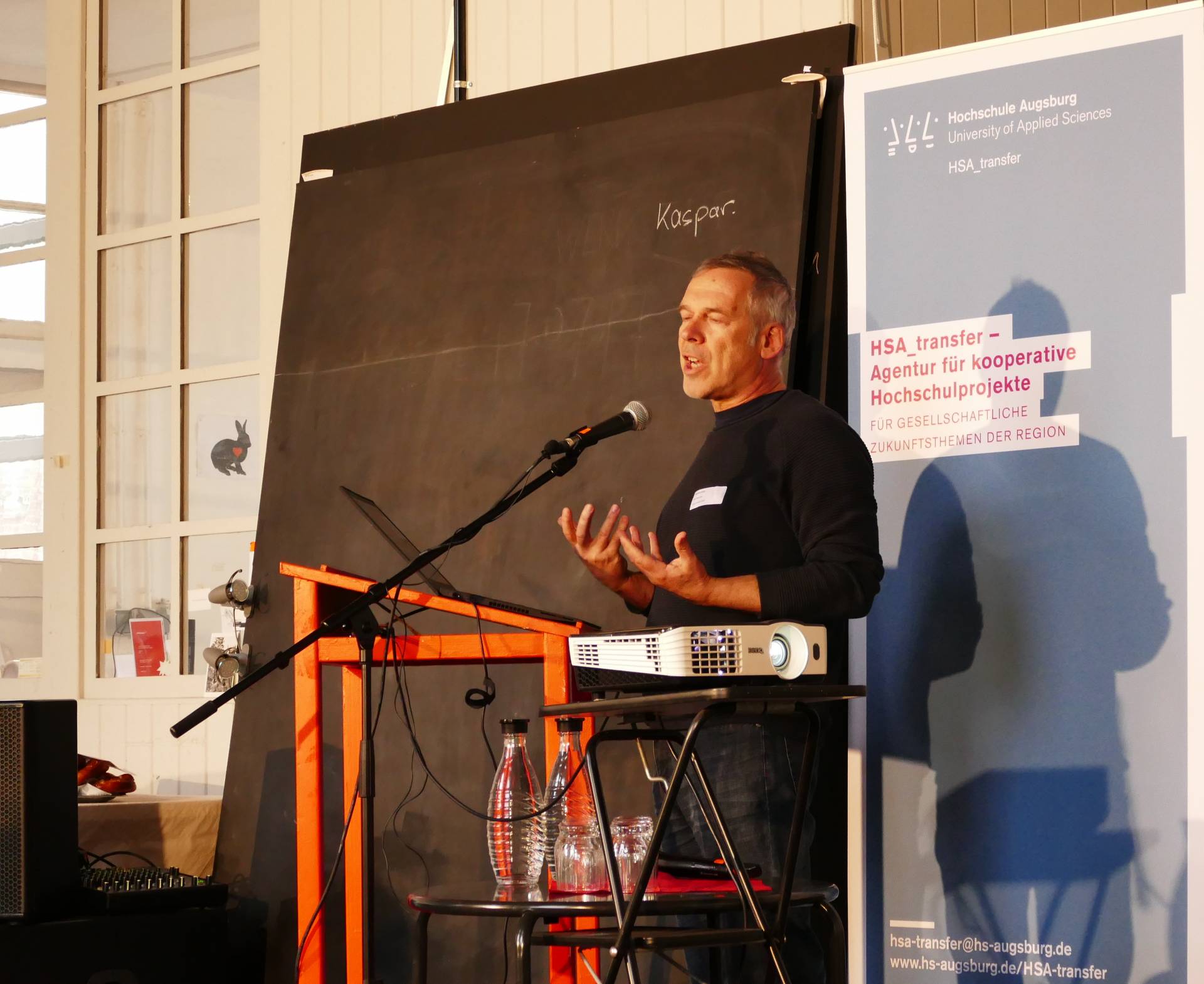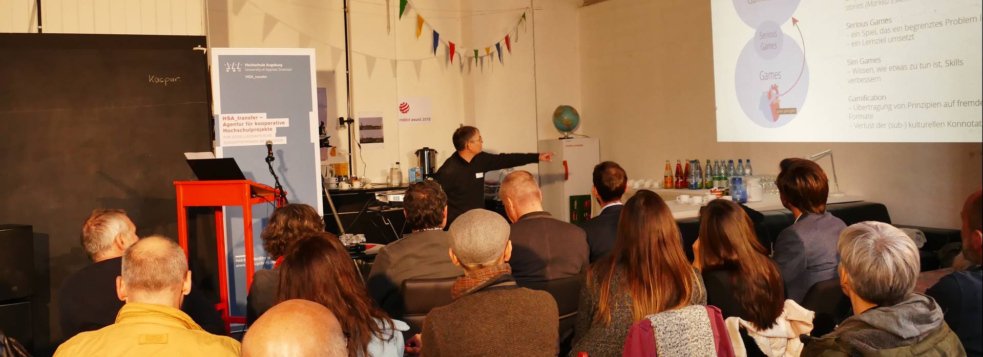 Auf dem ersten HSA_transfer | Forum am 4. April 2019 in der UTOPIA TOOLBOX in Augsburg stellte die Hochschule Augsburg gemeinsam mit Kooperationspartnern Aktivitäten ihres gesellschaftlichen Engagements vor. Dazu zählten Best-Practices aus langjährig bewährten Kooperationen ebenso wie innovative Forschungsansätze und Ideen für soziale Innovationen. Rund 60 Teilnehmer waren der Einladung gefolgt.