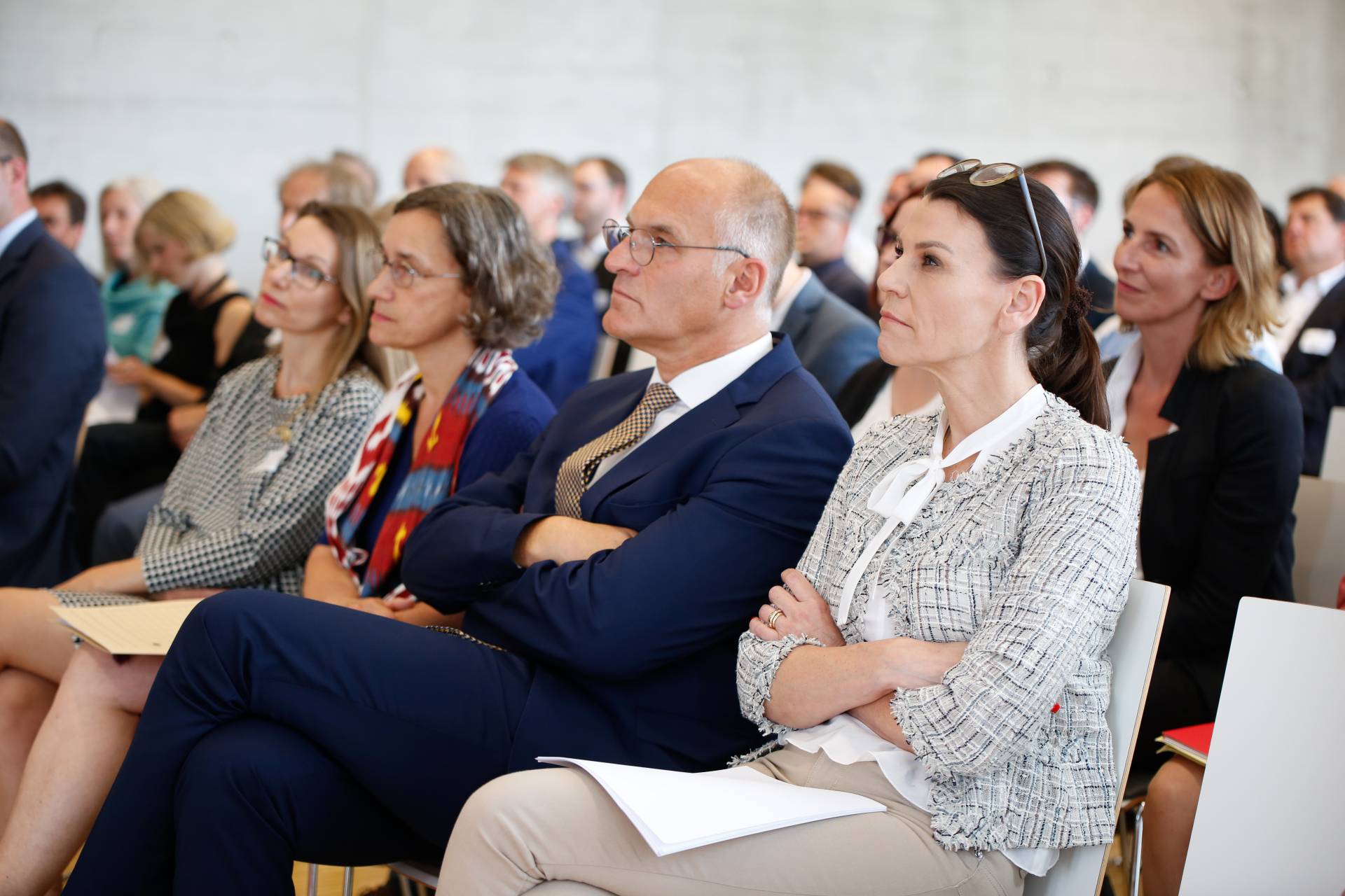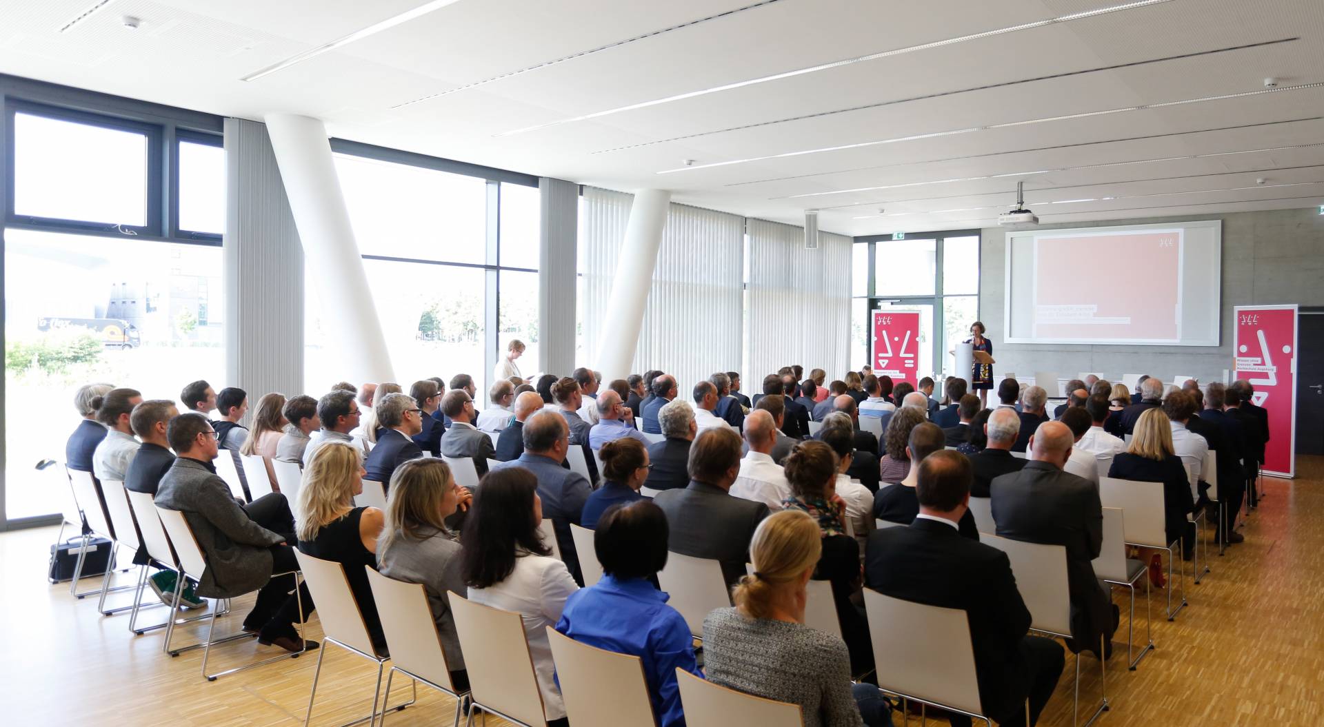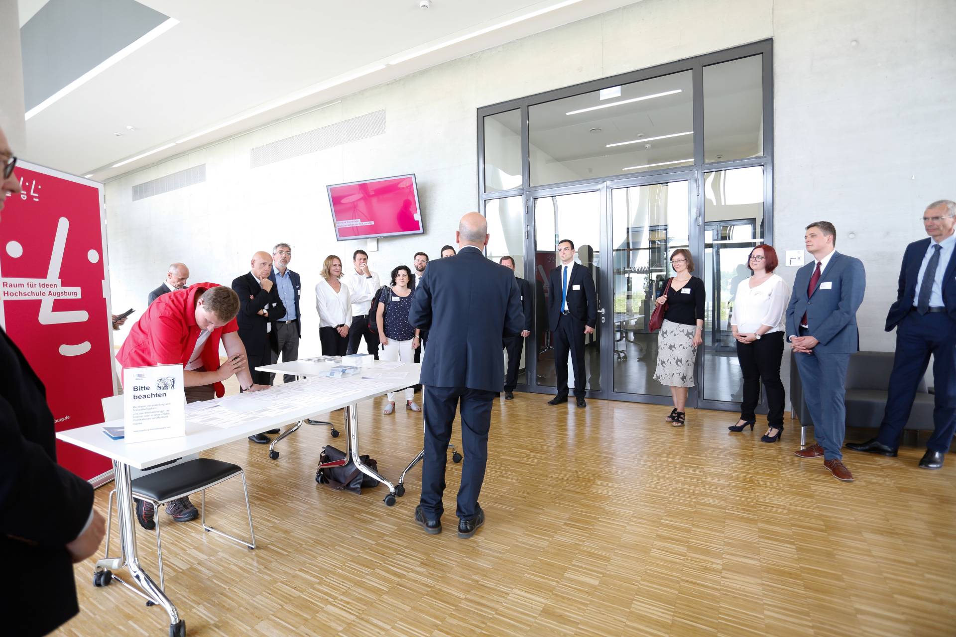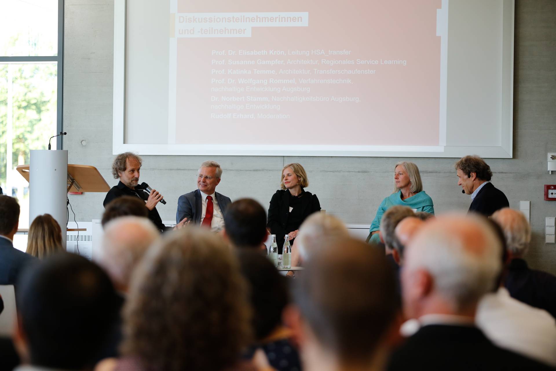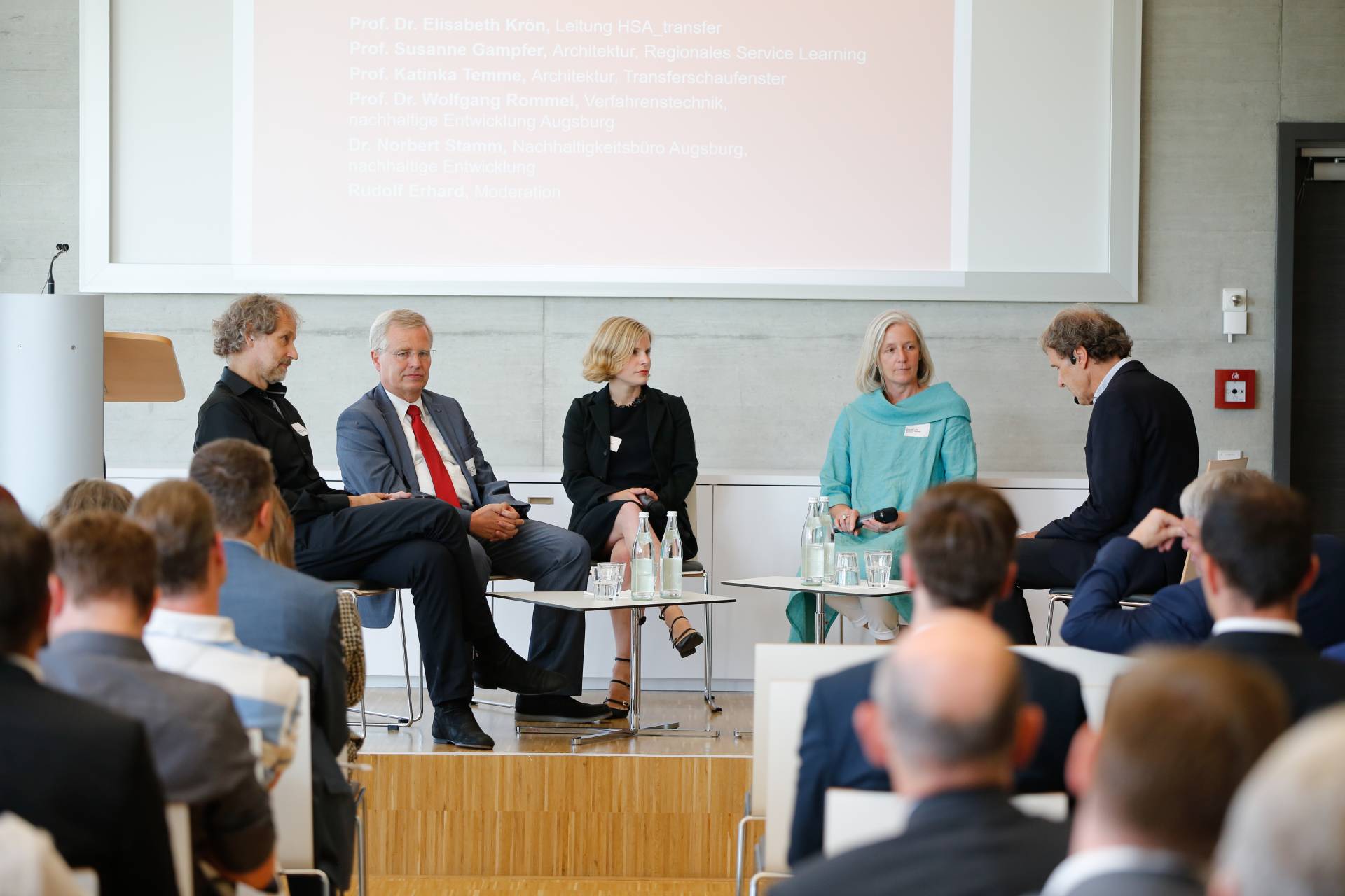 Der feierliche Auftakt von HSA_transfer fand am 19. Juni 2018 im Technologiezentrum Augsburg statt. Die Veranstaltung eröffnete Prof. Dr. Elisabeth Krön, Vizepräsidentin für Forschung und Wissenstransfer der Hochschule Augsburg. Als Ehrengast richtete die Bayerische Staatsministerin für Wissenschaft und Kunst, Prof. Dr. Marion Kiechle, eine Ansprache an die Gäste. Der Augsburger Oberbürgermeister Dr. Kurt Gribl hob in seiner Rede die Bedeutung von HSA_transfer für die Region Bayerisch-Schwaben hervor. Wie ein Transfer zwischen Hochschule und Wirtschaft gelingen kann, skizzierte Prof. Dr. Andrew Ross von der Faculty of Engineering and Technology, School of Built Environment, Liverpool John Moores University, in dem Impulsvortrag „Knowledge Transfer Partnerships – an UK approach to Transfer between Industry and University“. Wertvolle Impulse kamen aus der anschließenden Diskussionsrunde „Engagiert vor Ort – die HSA_transfer und ihre Bedeutung für die Region“ mit Vertreterinnen und Vertretern der geplanten Teilprojekte. Zeit für Gespräche und zum gegenseitigen Kennenlernen bestand im Anschluss beim Stehempfang.