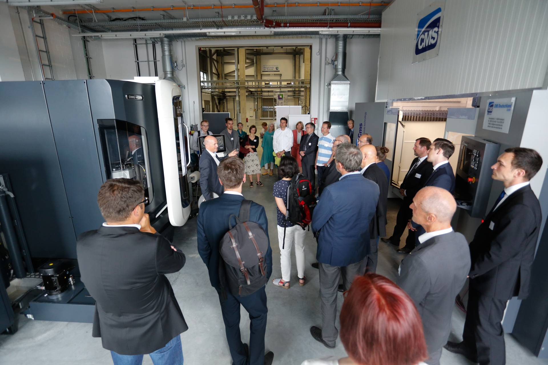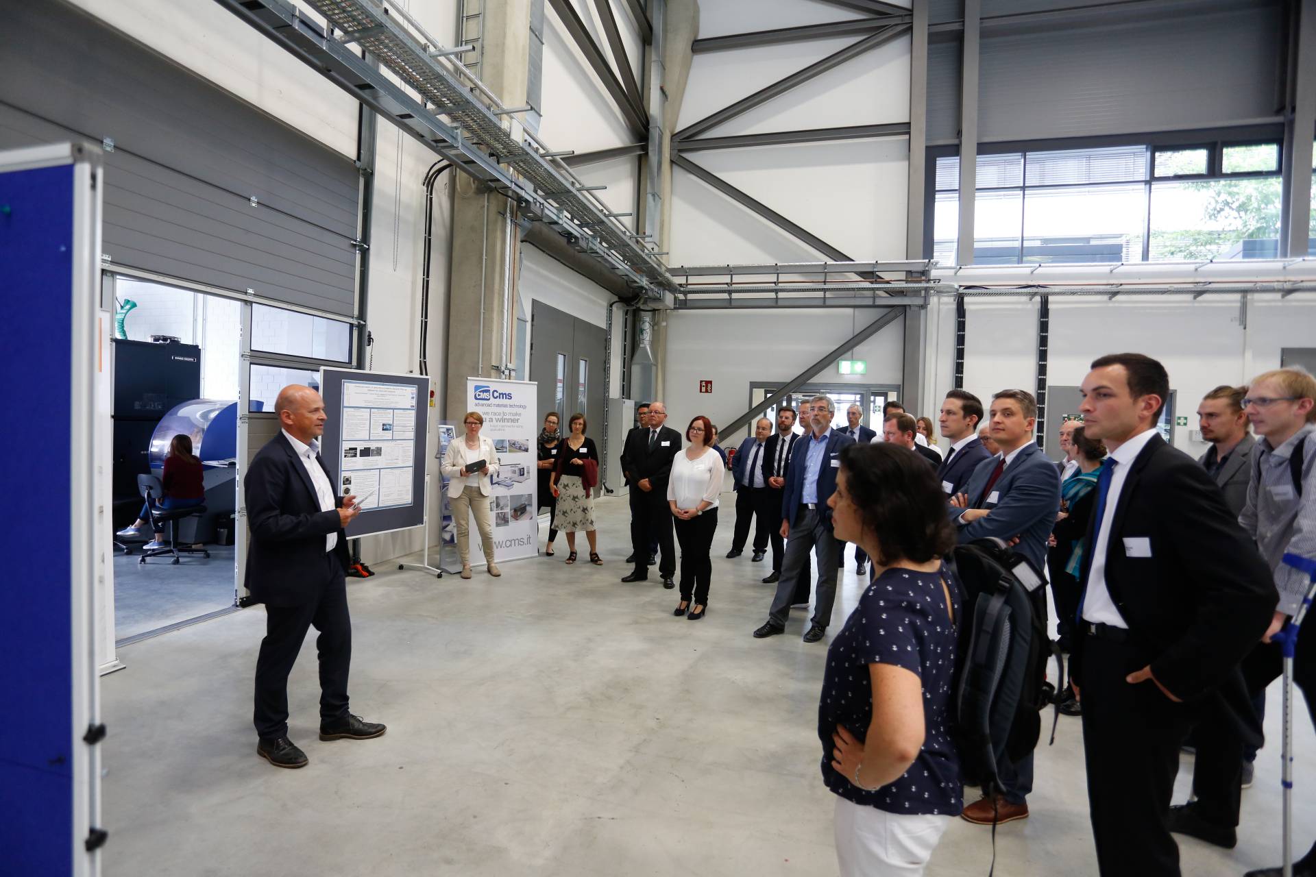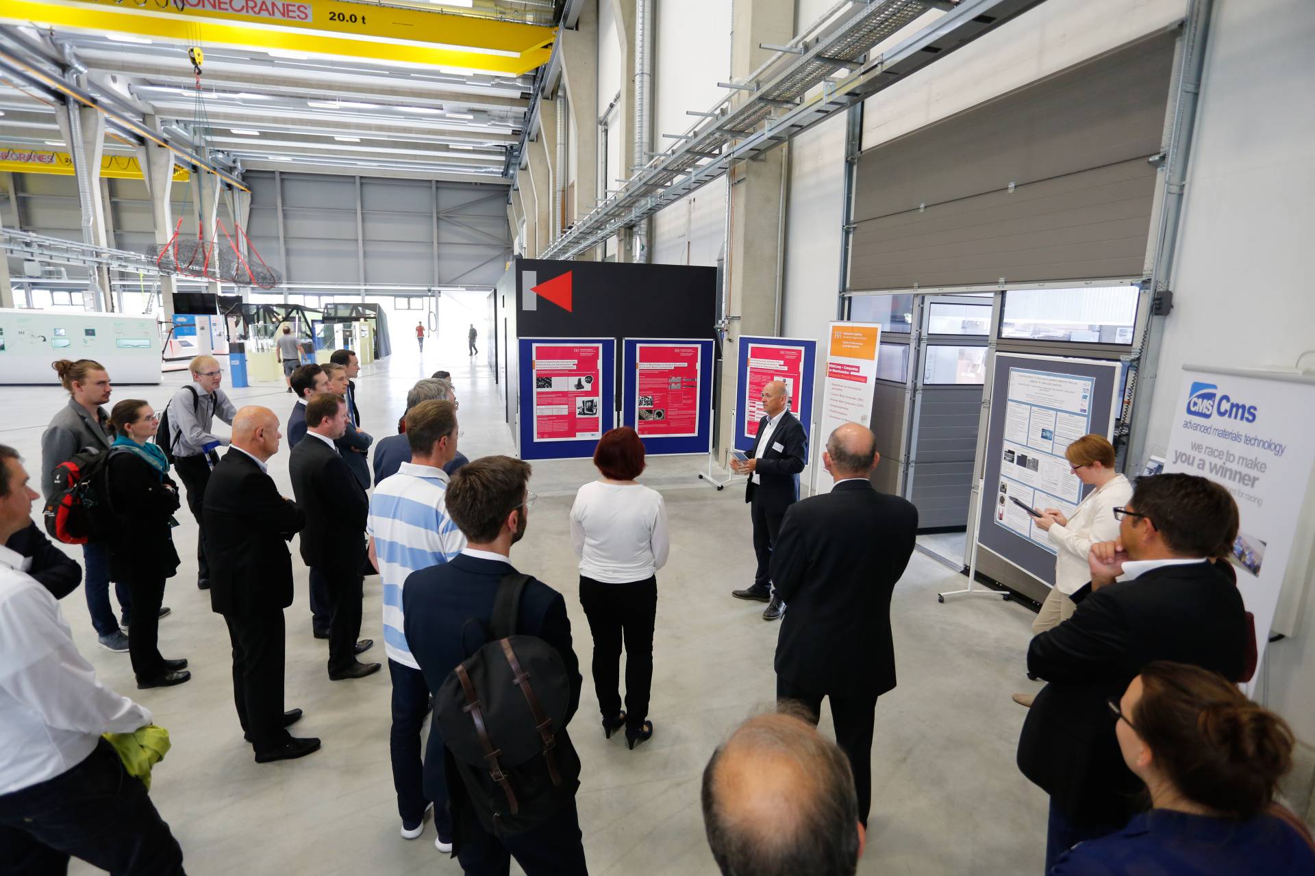 Das Begleitprogramm zum Festakt vermittelte bereits, wie HSA_transfer den „Blick hinter die Kulissen“ von Innovationsprojekten ermöglicht: im Rahmen einer Führung lernten viele Interessierte das Labor der Forschungsgruppe HSA_comp – Composites im Maschinenbau – im Technologiezentrum kennen.