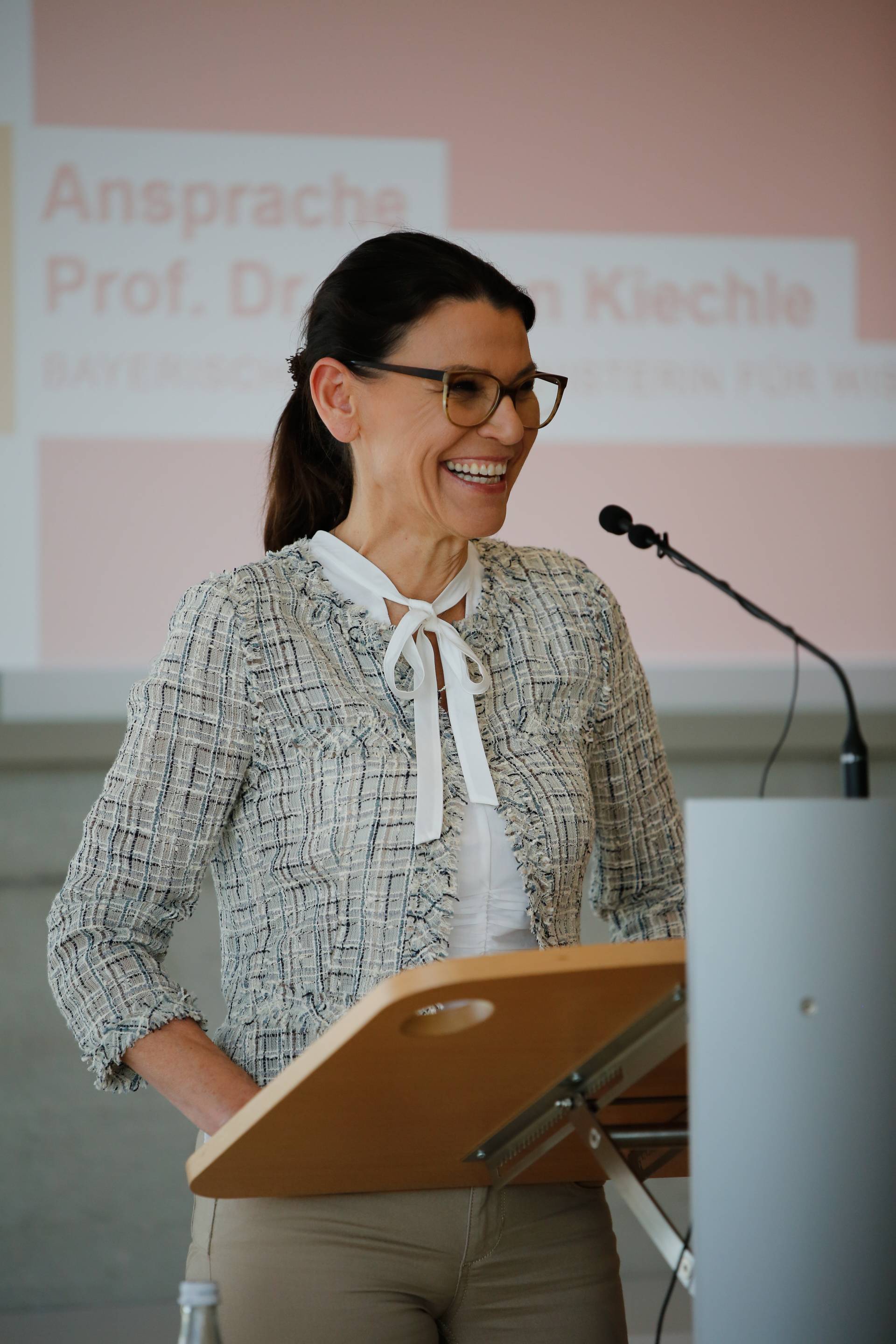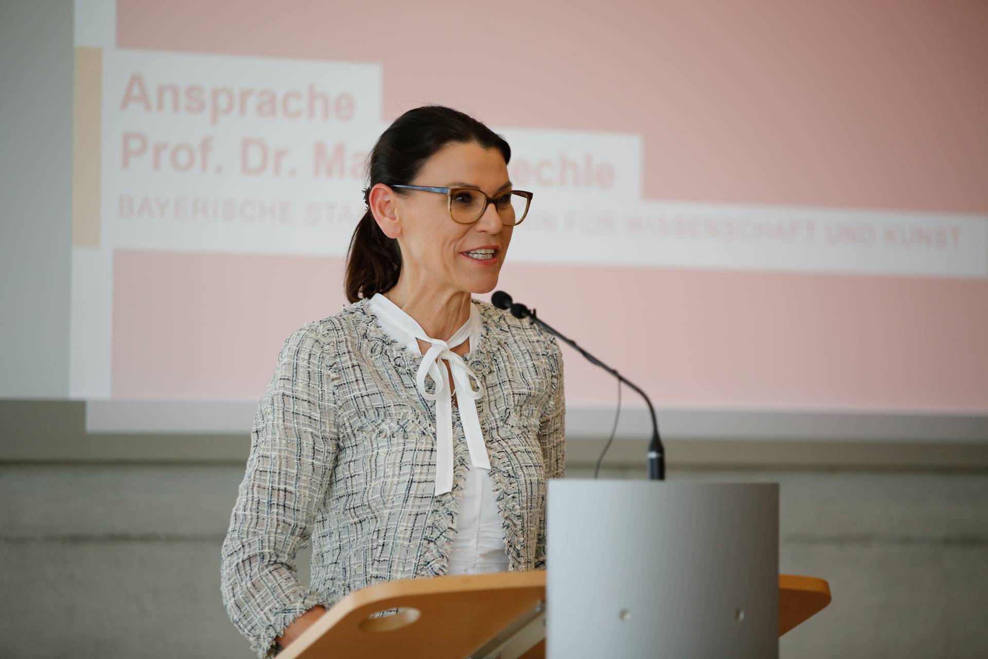 „In einer Welt im Wandel brauchen wir mehr denn je Zusammenarbeit und Vernetzung. Deshalb ist mir der Austausch unserer Forscher und Wissenschaftler mit Wirtschaft und Gesellschaft ein großes Anliegen. Daraus entstehen, wie hier in Augsburg, innovative Produkte, Dienstleistungen und Anwendungen – nahe an der Praxis, nahe am Menschen. Mit der Zukunftsschmiede HSA_transfer ist die Hochschule Augsburg Pionier und Aushängeschild unserer bayerischen Wissenschaftslandschaft“, sagte Prof. Dr. Marion Kiechle, Bayerische Staatsministerin für Wissenschaft und Kunst.