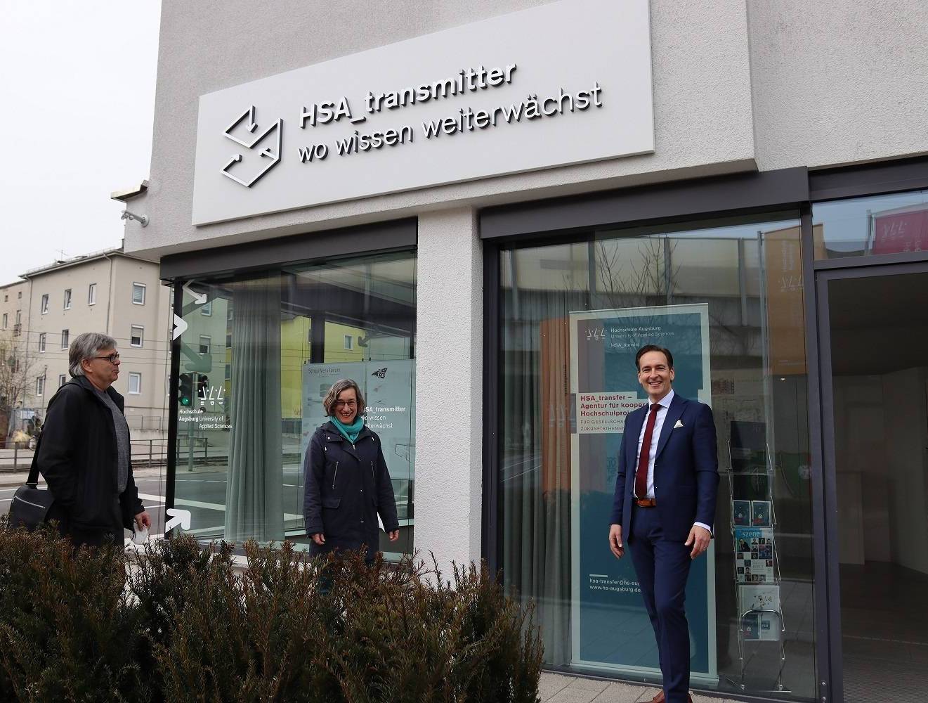 Zu den Initiator:innen der Ausstellung zählen neben Prof. Dr.-Ing. Elisabeth Krön, Dr. Mark Dominik Hoppe und Prof. Dipl.-Ing. Christian Peter auch Prof. Dipl.-Ing. Christian Waibel, Dekan der Fakultät für Architektur und Bauwesen sowie Prof. Michael Stoll, Fakultät für Gestaltung, und Mentor des HSA_transmitter.