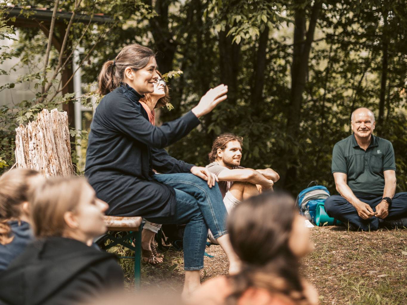 Bei der Premiere der Waldhochschule nahmen neben den Kindern und Erzieher:innen vom Internationalen Kinderhaus Augsburg, Vertreter:innen aus den Bereichen der Früh-, Integrations- und Schulpädagogik und dem Büro für Nachhaltigkeit der Stadt Augsburg teil.