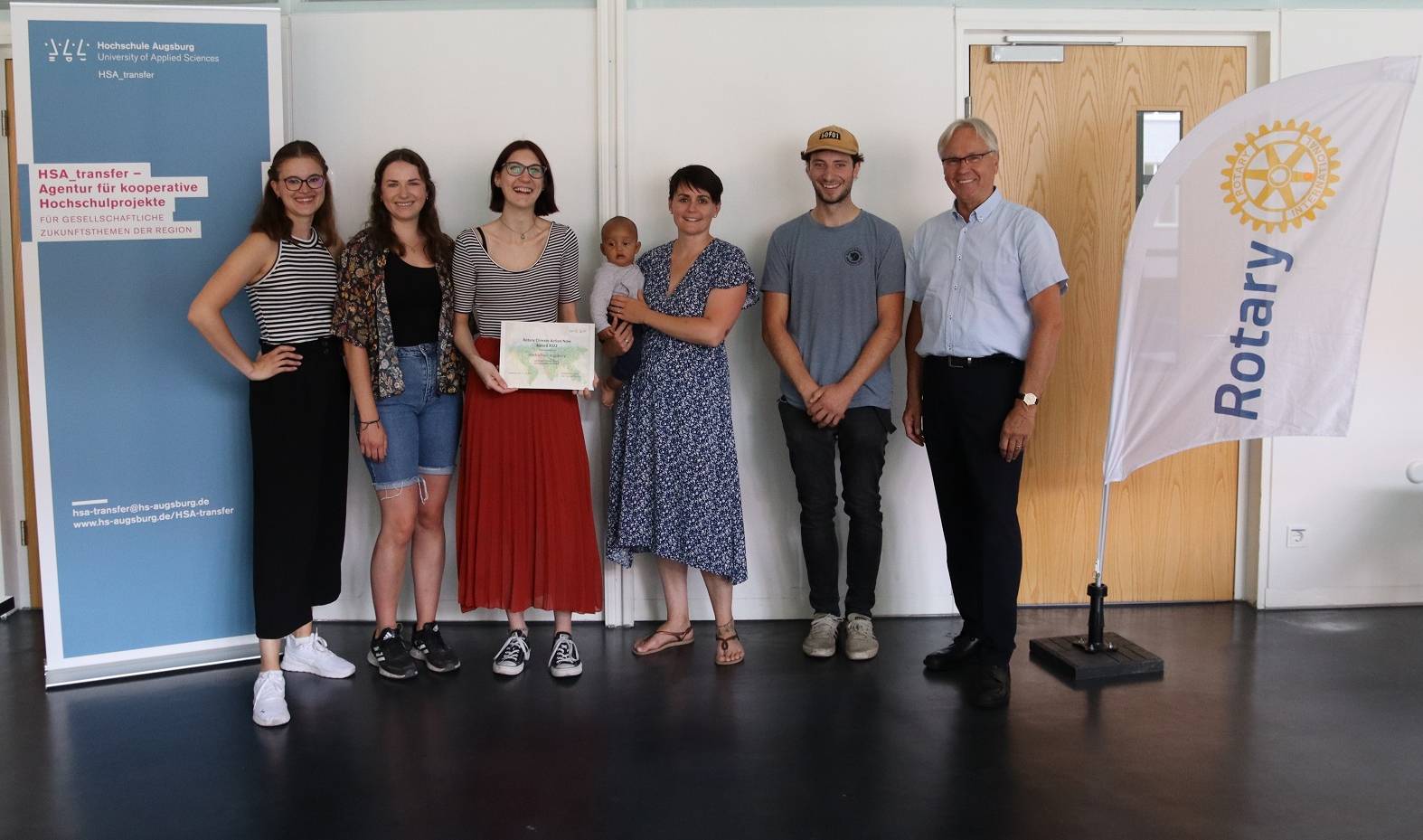 Der Climate Action Award der Augsburger Rotary Clubs ist mit insgesamt 10.000 Euro dotiert und wird künftig alle zwei Jahre vergeben. Mit ihm werden Einzelpersonen oder Gruppen gewürdigt, die sich um die Verbesserung der Umweltsituation und den Erhalt der natürlichen Lebensgrundlagen bemühen. Der Fokus liegt dabei auf Ideen, Projekten und Initiativen, die sich speziell der Abbremsung des Klimawandels oder der Verbesserung der Lebenssituation in Folge des Klimawandels widmen. Der Rotary Climate Action Award 2022 ging an das Gymnasium Friedberg (1.000 €), an Precious Plastic HSA (2.000 €) und an die Parkschule Stadtbergen (3.000 €).