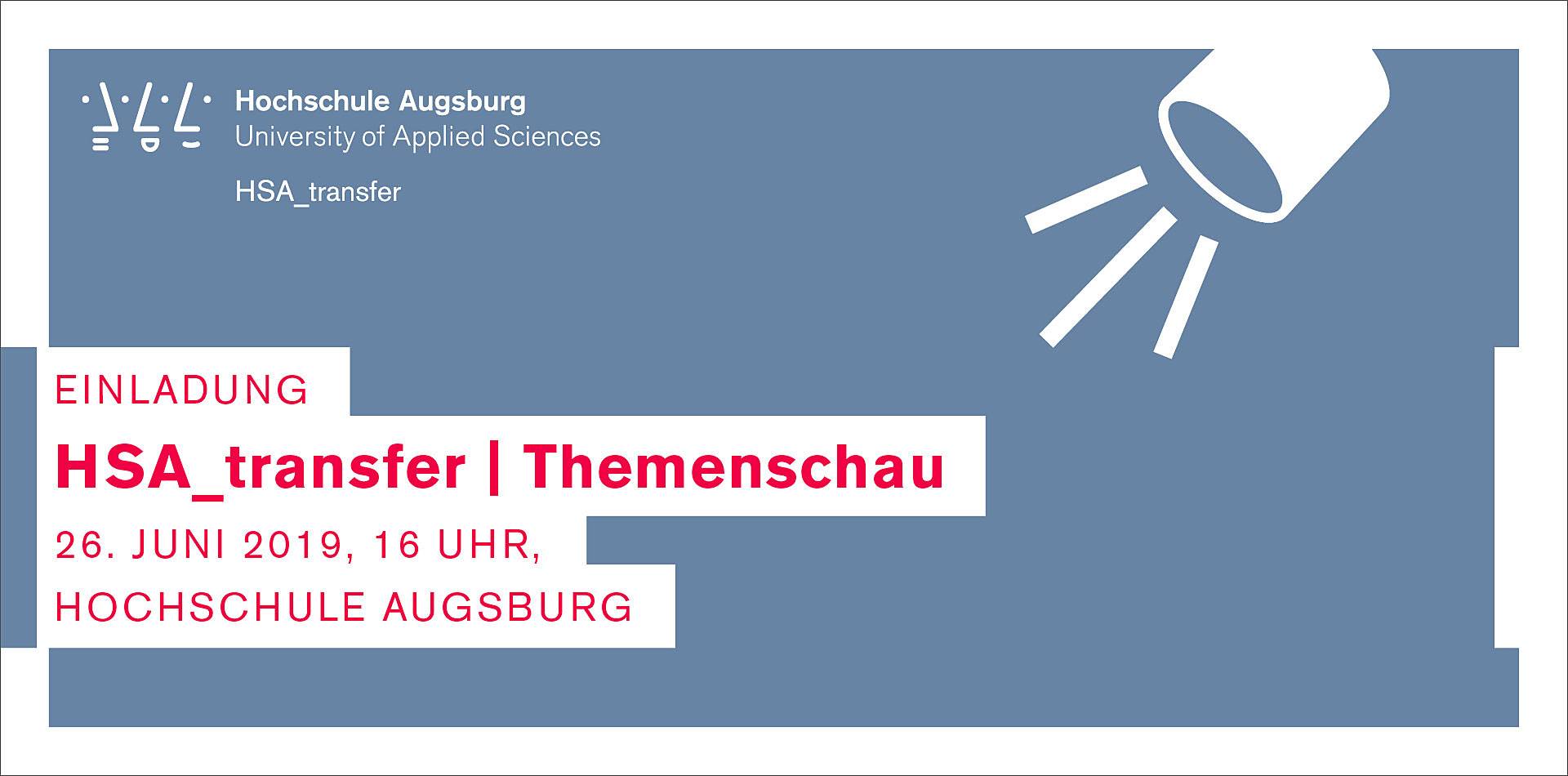 Im Jahr 2018 hat die Hochschule Augsburg das Projekt HSA_transfer im Rahmen der Bund-Länder-Förderinitiative Innovative Hochschule ins Leben gerufen. Damit hat die Hochschule Augsburg die Chance erhalten, ihre Transferaktivitäten weiter auszugestalten, fokussiert auf die gesellschaftlichen Zukunftsthemen der Stadt Augsburg und der Region Bayerisch-Schwaben. In unterschiedlichen Formaten greift HSA_transfer diese Themen auf. Hierzu zählt unter anderem die Veranstaltungsreihe HSA_transfer | Themenschau, die im Sinne des neuen Transferverständnisses der Hochschule Augsburg über Projekte mit „gesellschaftlichem Mehrwert” informiert.