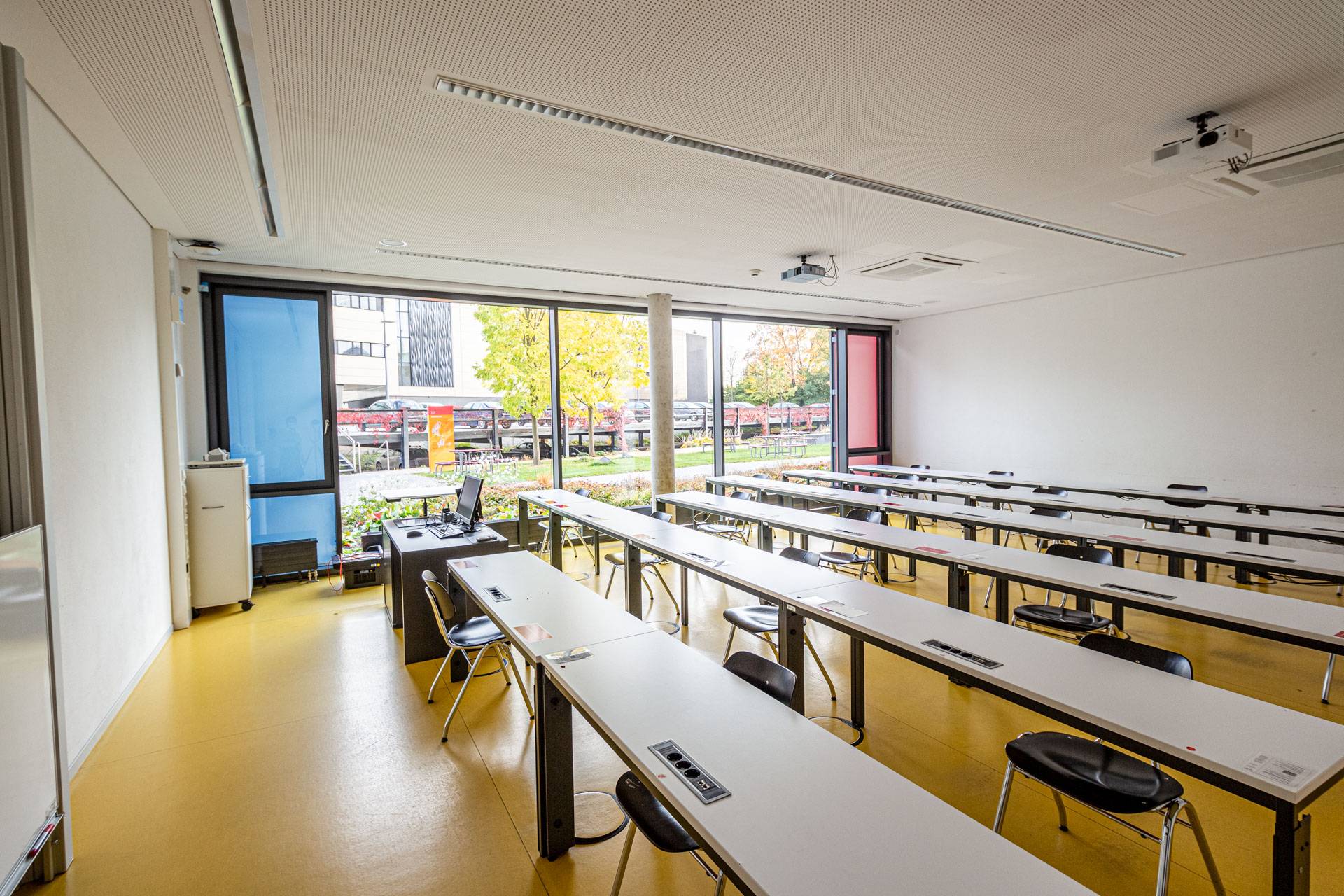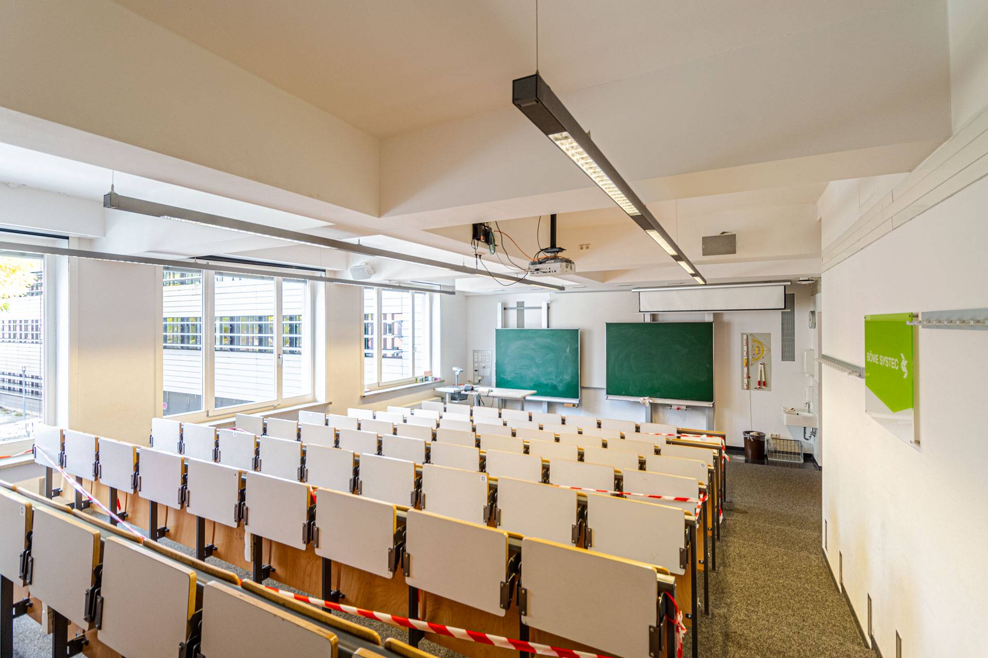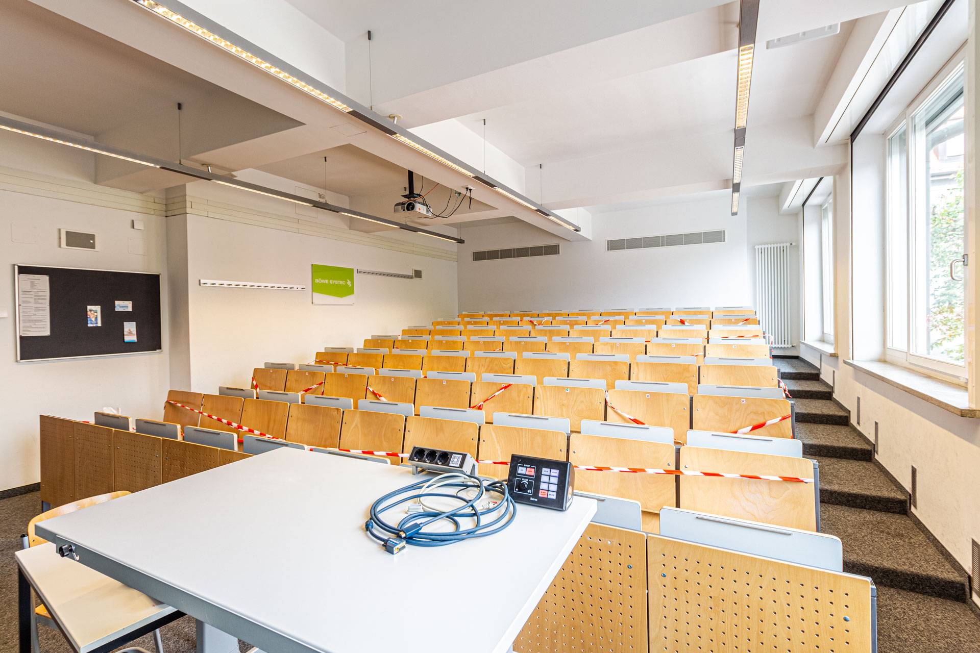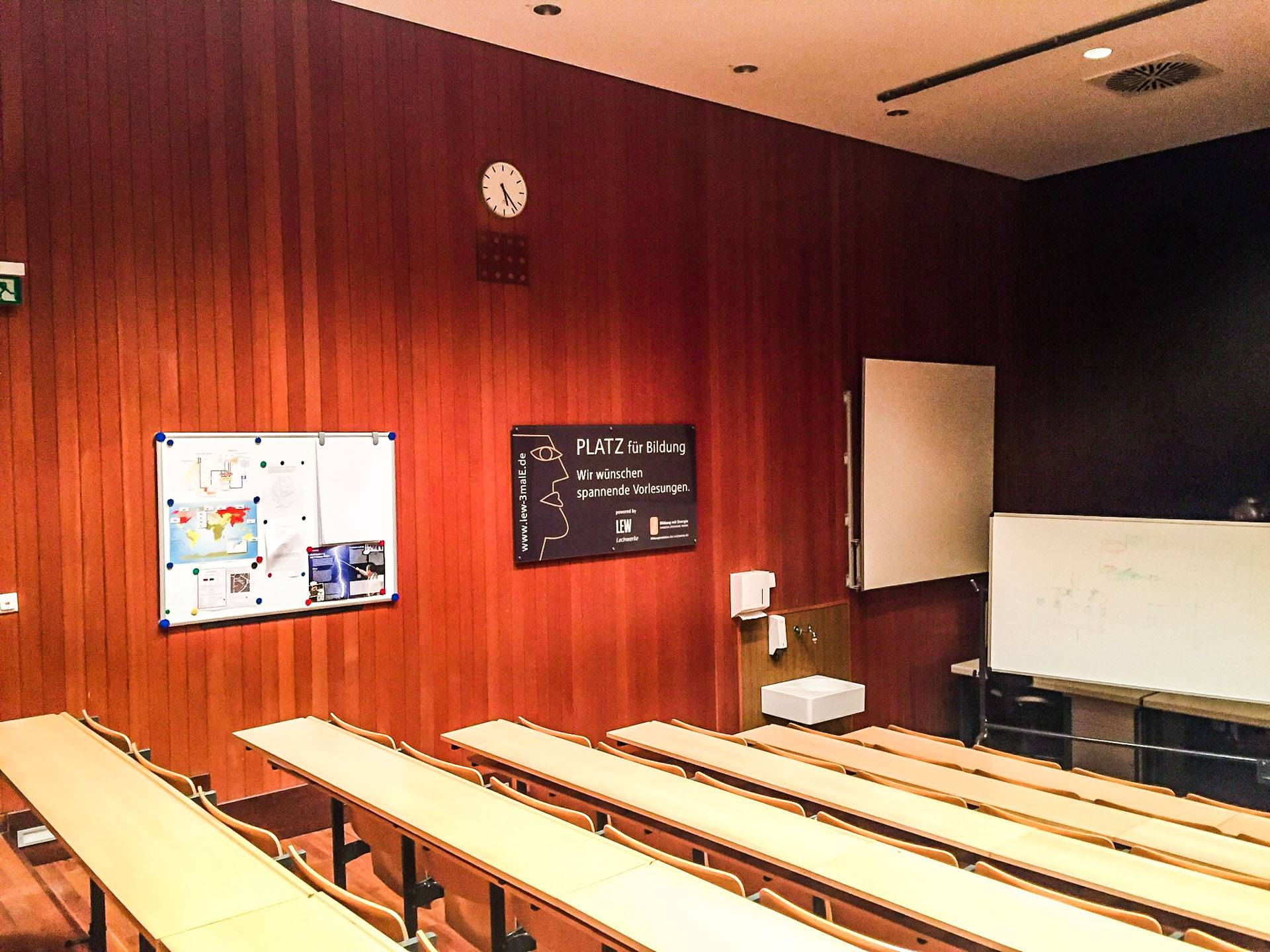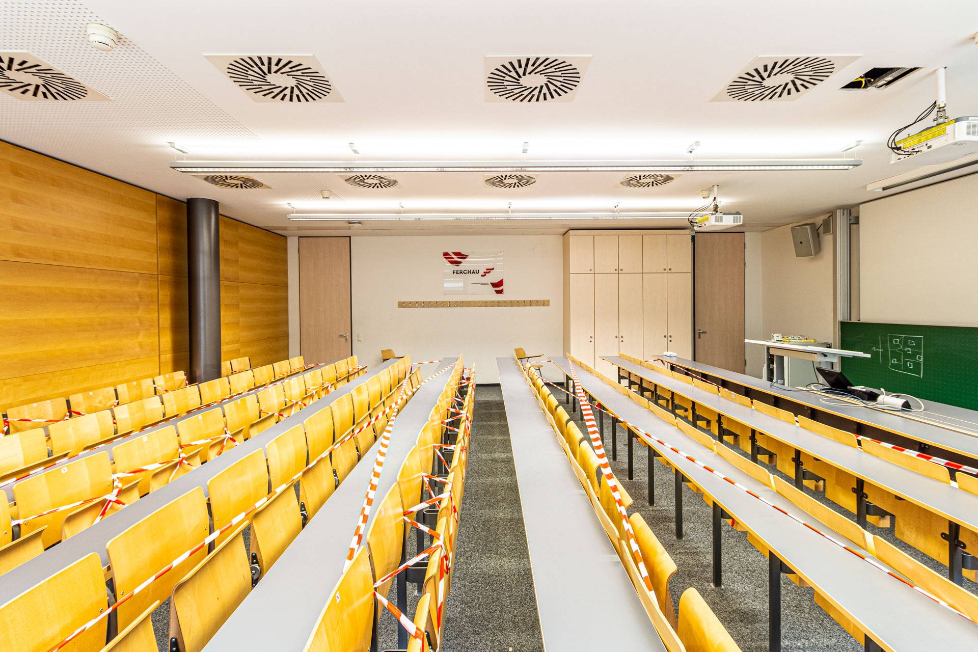 Da in Pandemiezeiten nur wenige Studierende an der Hochschule in Präsenzveranstaltungen sind, präsentieren wir die Hörsäle zusätzlich in einer Bildergalerie hier auf unserer Website. Sie möchten auch einen Hörsaal oder ein Labor nach Ihrem Unternehmen oder einer Person bezeichnen? Hier finden Sie weitere Informationen und Ansprechpartner: Hörsaal- und Laborpatenschaft