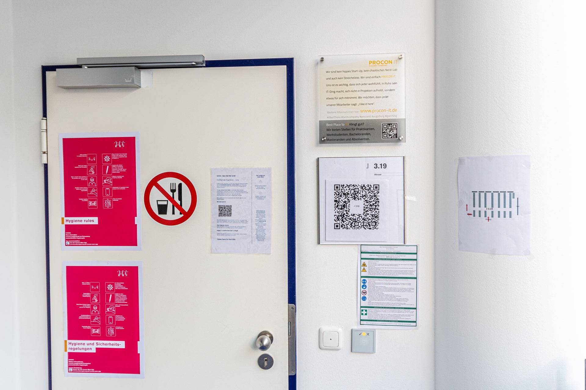 Um bei den Studierenden wahrgenommen zu werden, bietet die Hochschule Augsburg unter anderem Patenschaften für Hörsäle und Labore als Kooperationsform an. Der betreffende Raum wird mit Vertragsbeginn als "Ihr Unternehmen"-Hörsaal ausgewiesen und wird innen und außen mit hochwertigen Acryltafeln gekennzeichnet. Neben der namentlichen Präsenz an der Hochschule, können die Partner auch eigene Veranstaltungen in Abstimmung mit der jeweiligen Fakultät ausrichten und so Kontakte zu Studierenden knüpfen.