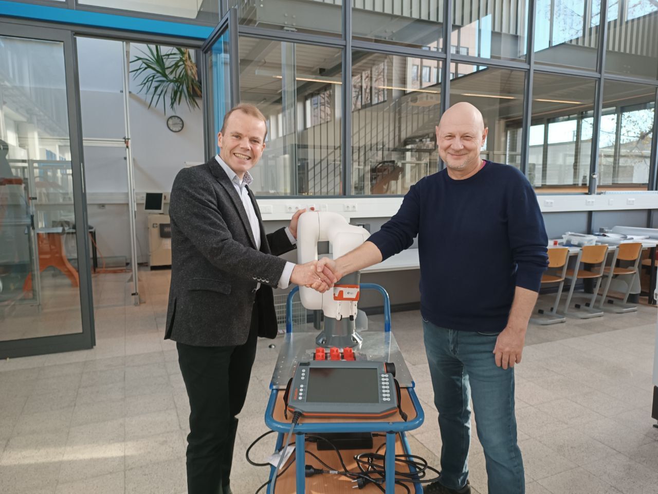 An der Fakultät für Maschinenbau und Verfahrenstechnik fanden Gespräche mit dem Dekan der Fakultät, Prof. Ulrich Wiegand und Prof. Eberhard Roos, Laborleiter für Robotertechnik, Produktionsautomatisierung und Geometriesimulation statt. Schwerpunkte der Besprechung waren Themen aus dem Bereich Cyber-physische Systeme, Künstliche Intelligenz und Robotik in Lehre und Forschung