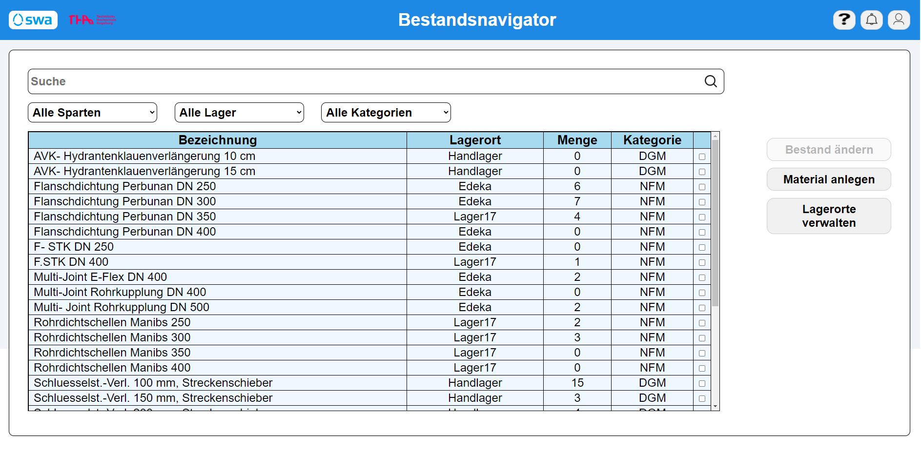 Den Mitarbeitenden bei swa Netze fehlt ein Überblick über den Bestand an verwendbaren Ersatzteilen und Notfallmaterial. Wünschenswert wäre ein Tool zur Fachabteilungsübergreifenden Bestandsführung, mit dem sich Materialbestände konsolidieren und nachhaltig wiederverwenden lassen, um Geld und Ressourcen zu sparen.