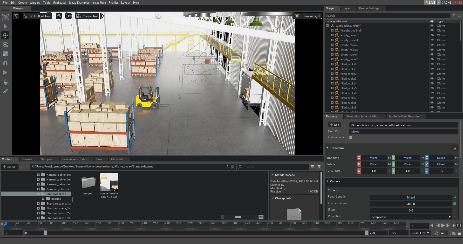 Da konkrete Logistikvorgänge streng vertraulich sind, gestaltet sich das Erlangen von Videomaterial oder Bildmaterial, das den Entladungsvorgang eines LKWs zeigt, als große Herausforderung. Aus diesem Grund wurde eine Simulationsumgebung entwickelt, die es ermöglicht, verschiedene Entladungsszenarien zu simulieren und so die Objekterkennungsalgorithmen zu trainieren und zu optimieren.
