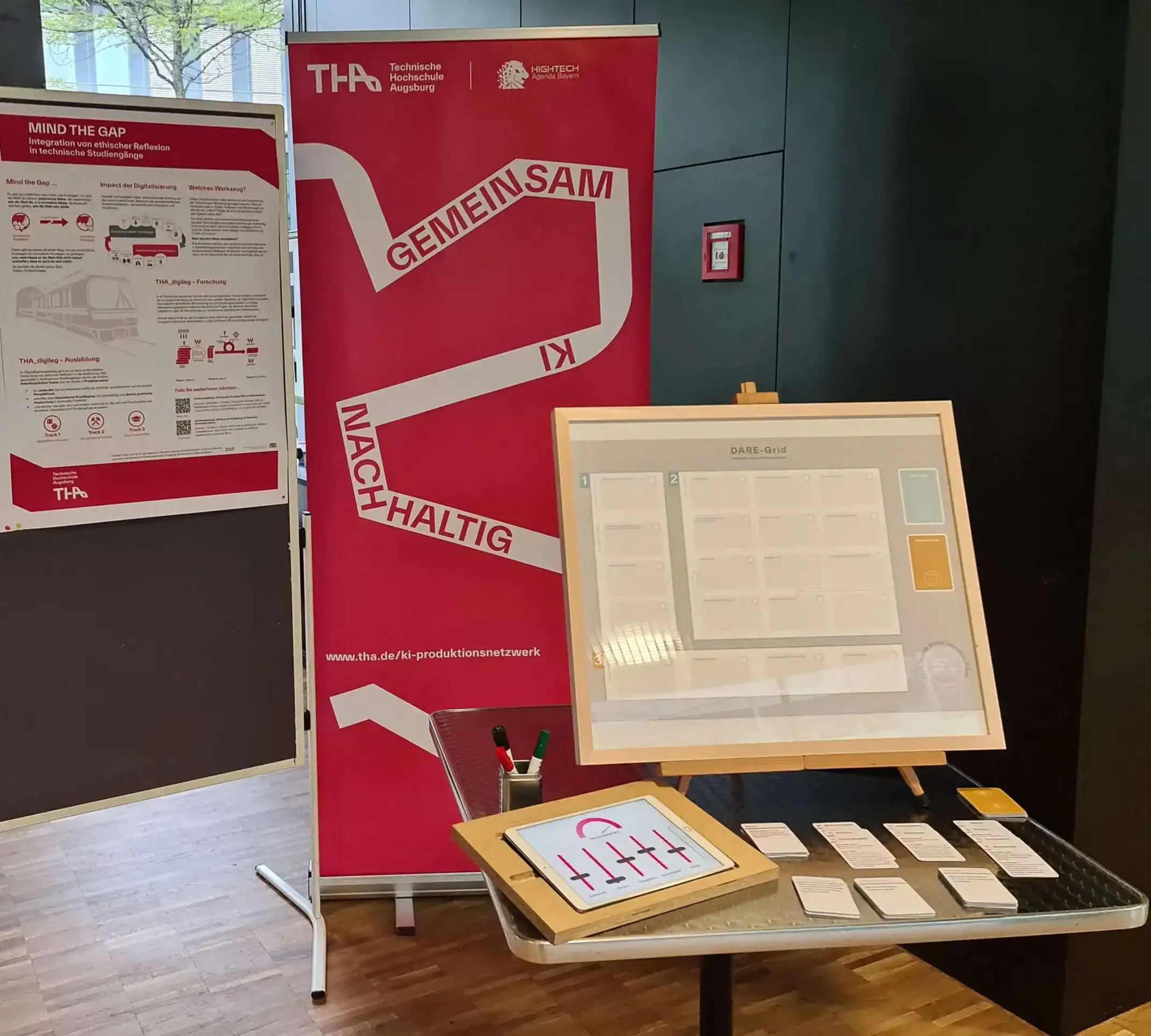 Am 12.09.2024 trafen sich Deutschlands Digitalagenturen zum Erfahrungsaustausch an der Technischen Hochschule Augsburg. Gemeinsam sollte ausgelotet werden, wie Digitalisierung und künstliche Intelligenz in der öffentlichen Verwaltung gewinnbringend eingesetzt werden kann. Dabei stellen sich auch immer ethische Fragestellungen. Wir konnten mit einem Infostand dieses Thema aufgreifen und anschaulich die DARE-Methode (deliberativ – agil - responsiv - ethisch) vorstellen. Mit Hilfe des Ethik-Sliders konnte einfach gezeigt werden, dass nicht immer alle ethischen Ziele gleichzeitig erreicht werden können.