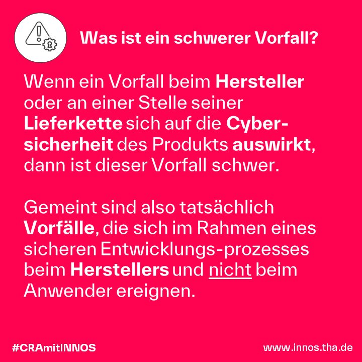 Wenn ein Vorfall beim Hersteller oder an einer Stelle seiner Lieferkette sich auf die Cyber-sicherheit des Produkts auswirkt, dann ist dieser Vorfall schwer.