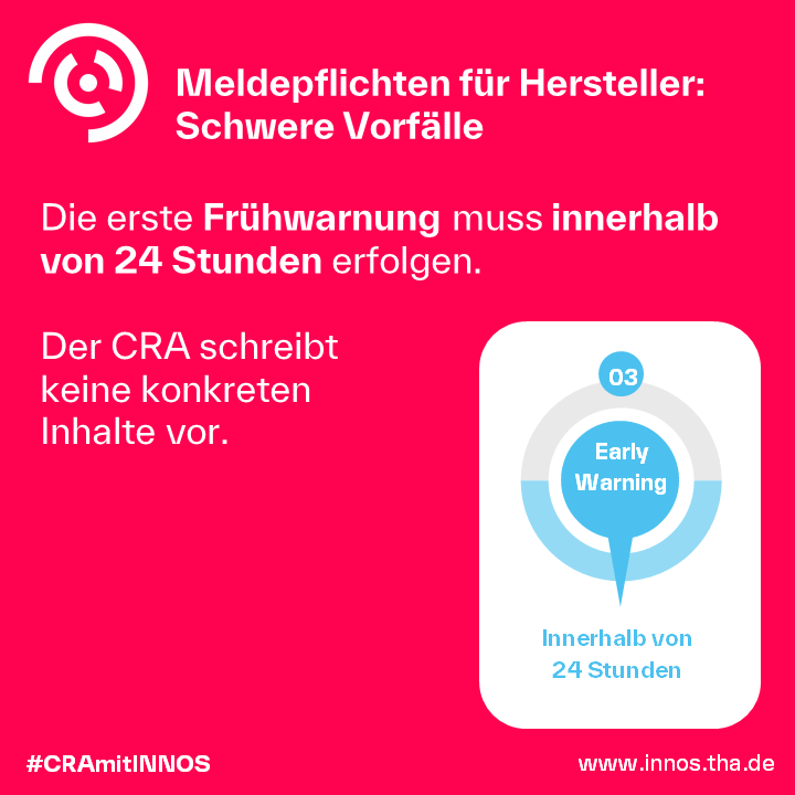 Die erste Frühwarnung muss innerhalb von 24 Stunden erfolgen. Der CRA schreibt hier allerdings keine konkreten Inhalte vor.