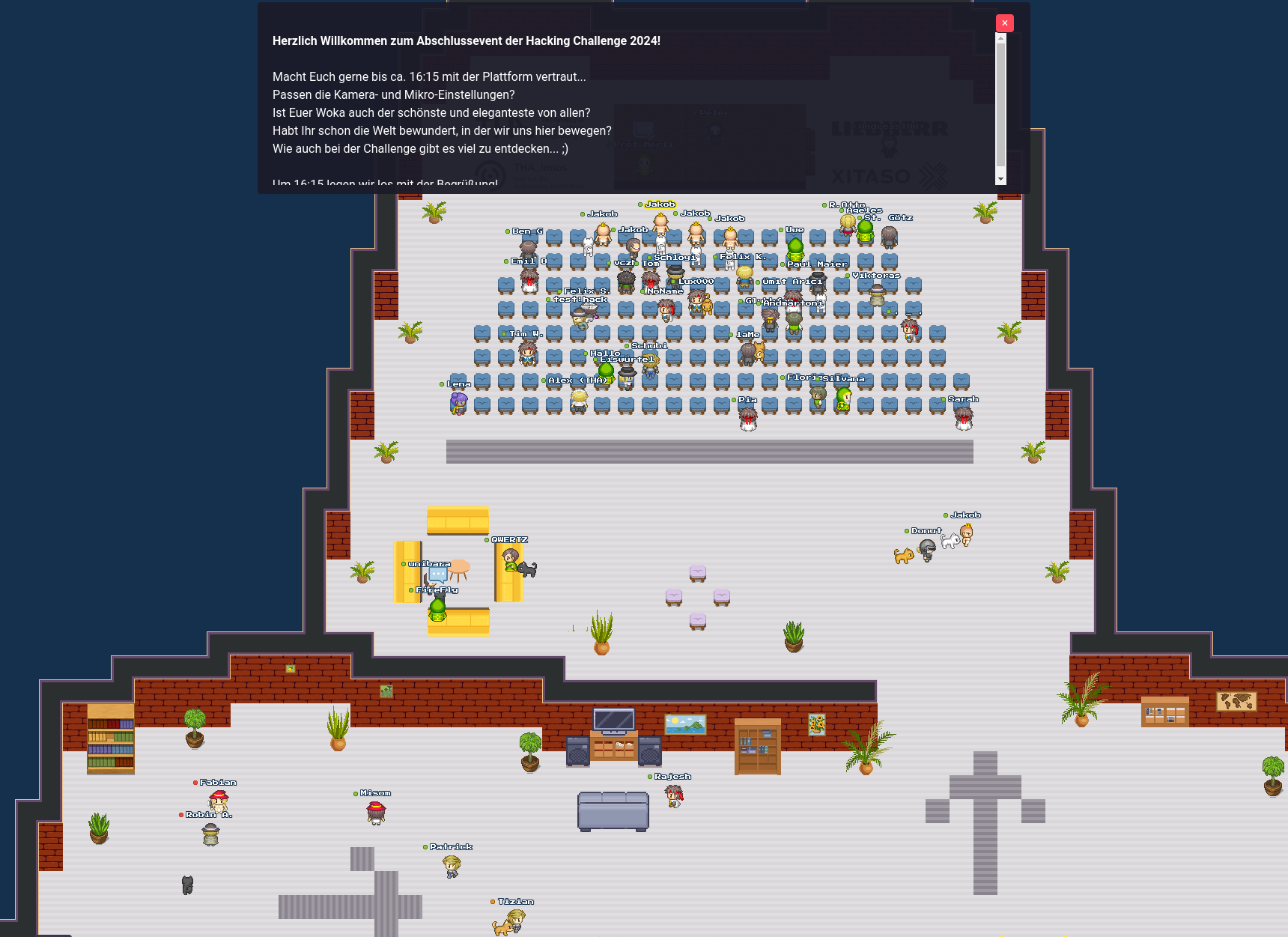 Auf dem Siegertreppchen standen bei der Siegerehrung am 14. Februar 2024 Einzelteilnehmer und Teams. Die virtuelle Veranstaltung fand diesmal auf der Plattform WorkAdventure statt, eine an Retro- Videospiele angelehnte 2D-Plattform, in der alle Teilnehmenden als kleine Figur repräsentiert sind und so auch an virtuellen Meetings teilnehmen können. Im Anschluss an die Veranstaltung konnten sich die Teilnehmenden noch untereinander in der virtuellen Welt austauschen.