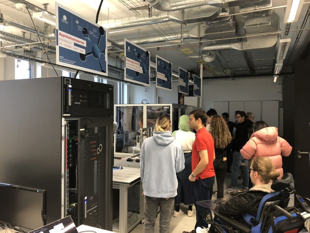 Die internationalen Studierenden aus der Bereich der Wirtschaftsinformatik an der Technischen Hochschule Augsburg besuchten kürzlich das Labor Industrielle Sicherheit des Instituts für innovative Sicherheit. Dort informierten Sie sich zur Arbeit im Bereich der industrielle Sicherheit. In diesem Schwerpunkt von THA_innos spielt nicht nur der Schutz vor Cyberangriffen eine Rolle, die produzierenden Unternehmen ungemein schaden können. Dabei geht es auch um Arbeitssicherheit, also die sichere Verwendung von industriellen Maschinen. Studierende haben hier die Möglichkeit sich im Master Industrielle Sicherheit zur Führungskraft an der Schnittstelle zwischen Management, IT und Technik ausbilden zu lassen. Im Zertifikatsstudium Industrial Safety & Security haben auch Fachkräfte mit Berufsausbildung und ohne Abitur die Möglichkeit zur Weiterbildung.