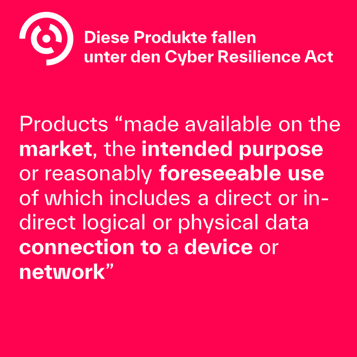 Products “made available on the market, the intended purpose or reasonably foreseeable use of which includes a direct or in-direct logical or physical data connection to a device or network”