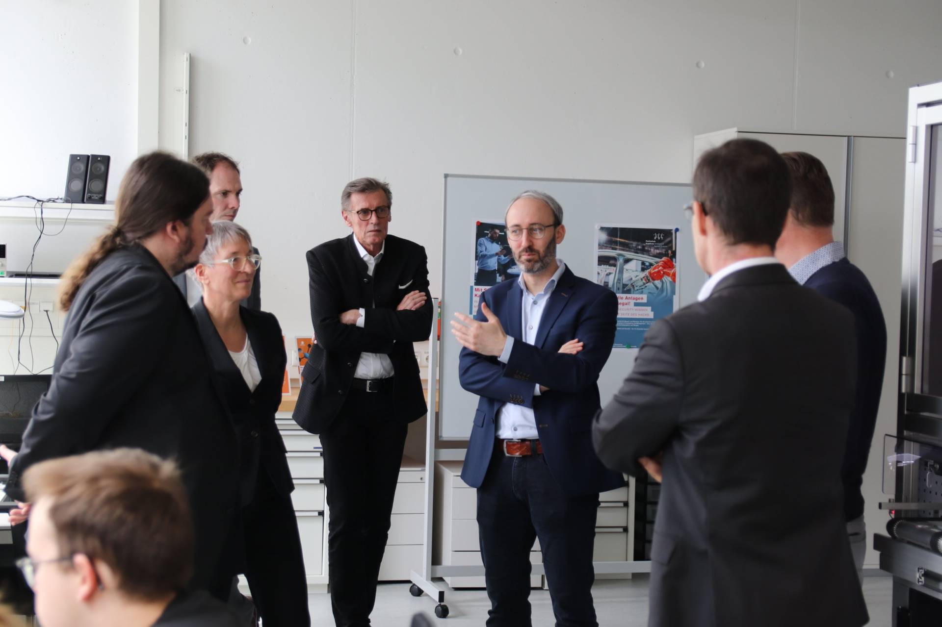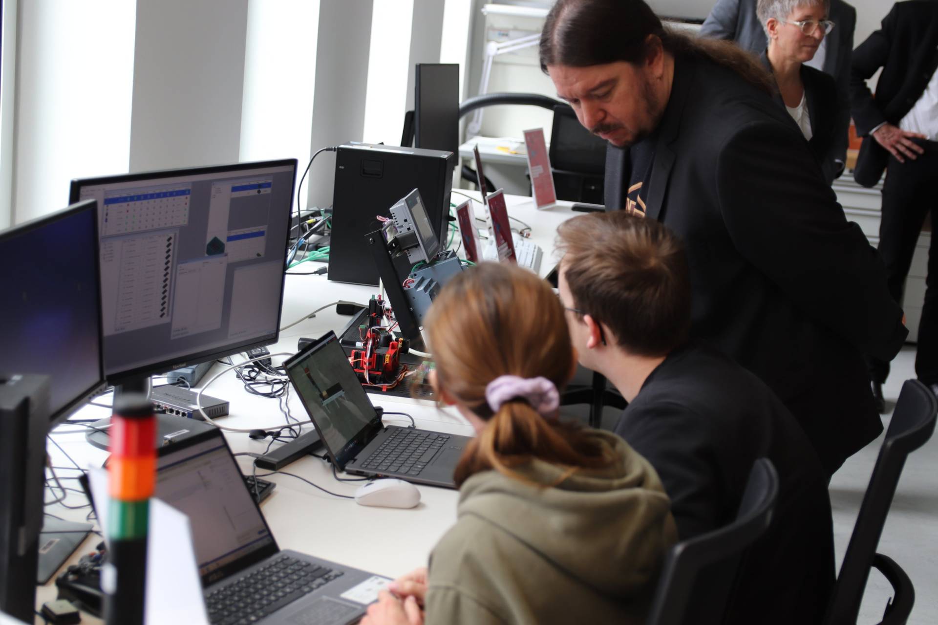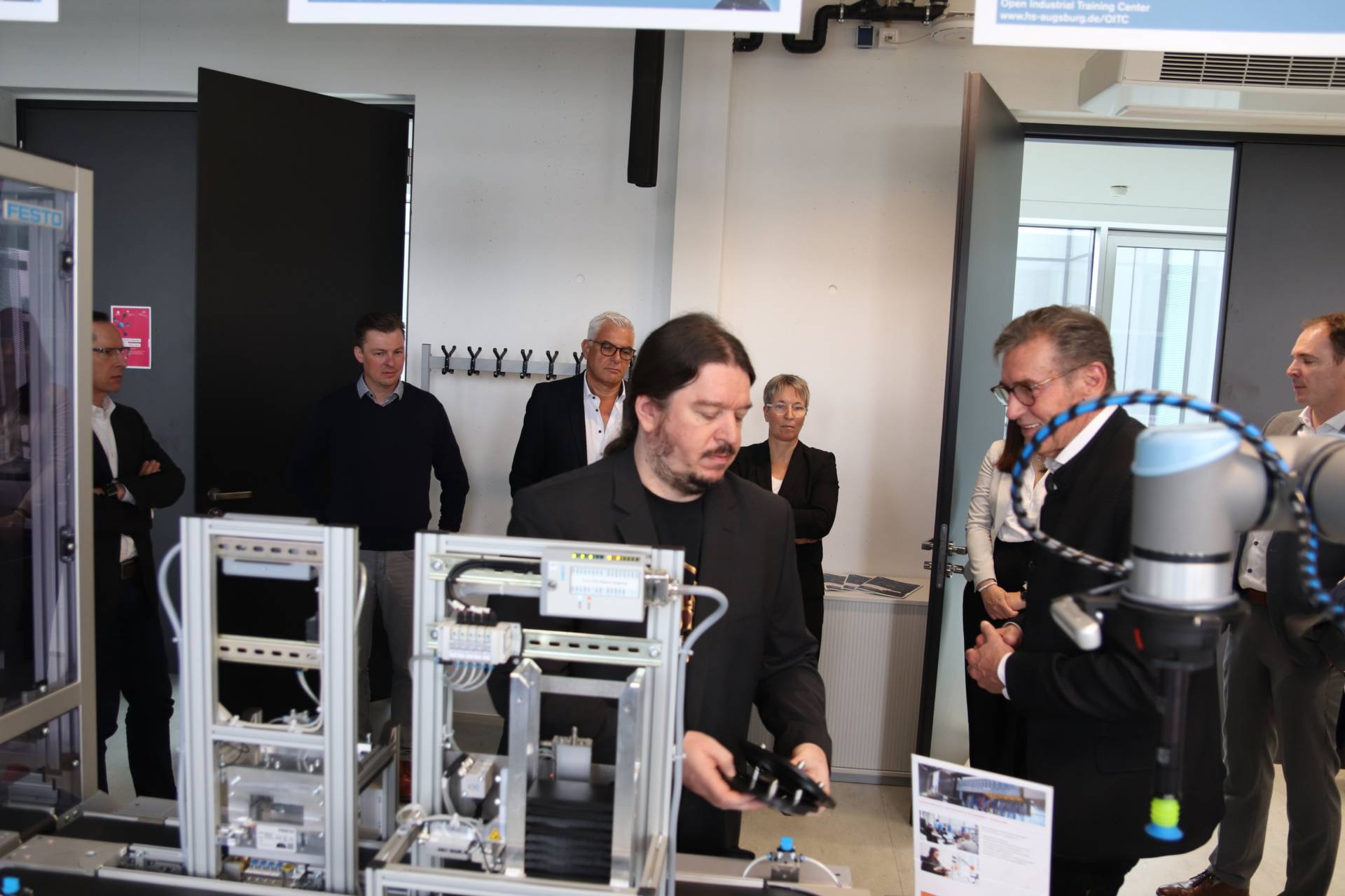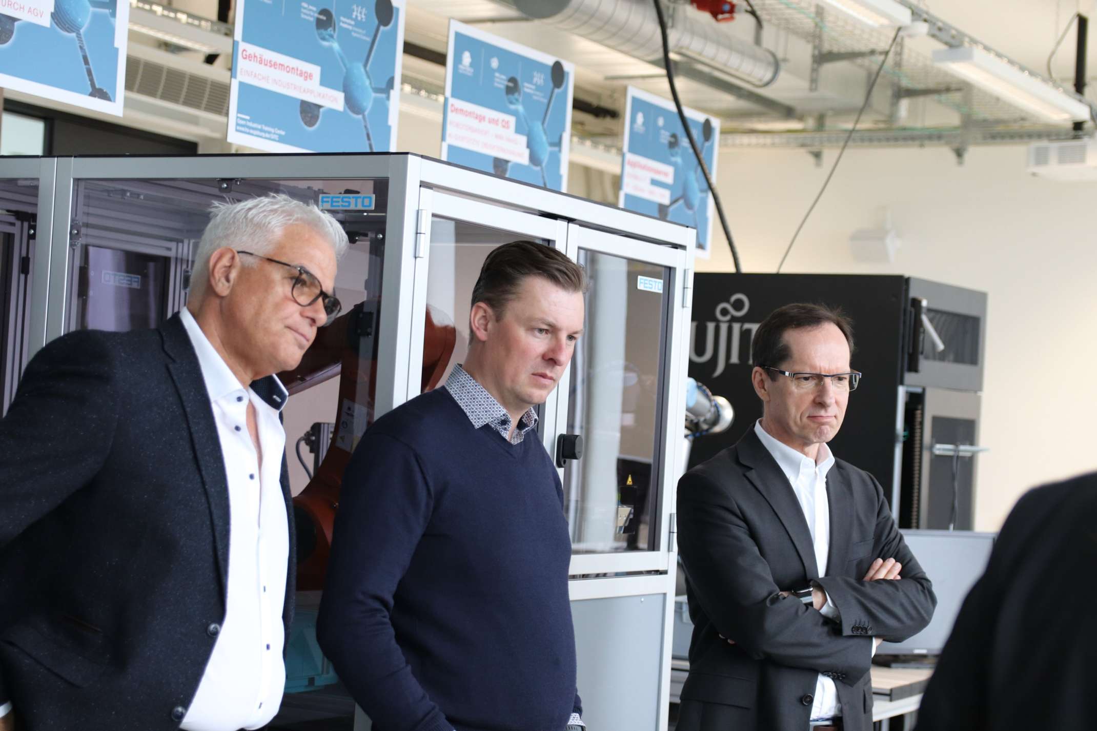 Austausch mit der Wirtschaft gehört zum Alltag an der Technischen Hochschule Augsburg. Dazu gehören auch Treffen mit Unternehmen. Zum einen, um sich über die aktuelle Entwicklung in der angewandten Forschung auszutauschen. Zum anderen, um Bedarfe in der Wirtschaft zu identifizieren. Diesmal besuchte Siemens das Institut für innovative Sicherheit (HSA_innos) mit Franz Menzl (Vice President Technology and Innovation & CTO – Factory Automation), Dr. André Scholz (Department Leader Autonomous Factory) und Michael Haniotes von Siemens Automation Cooperates with Education (SCE).
