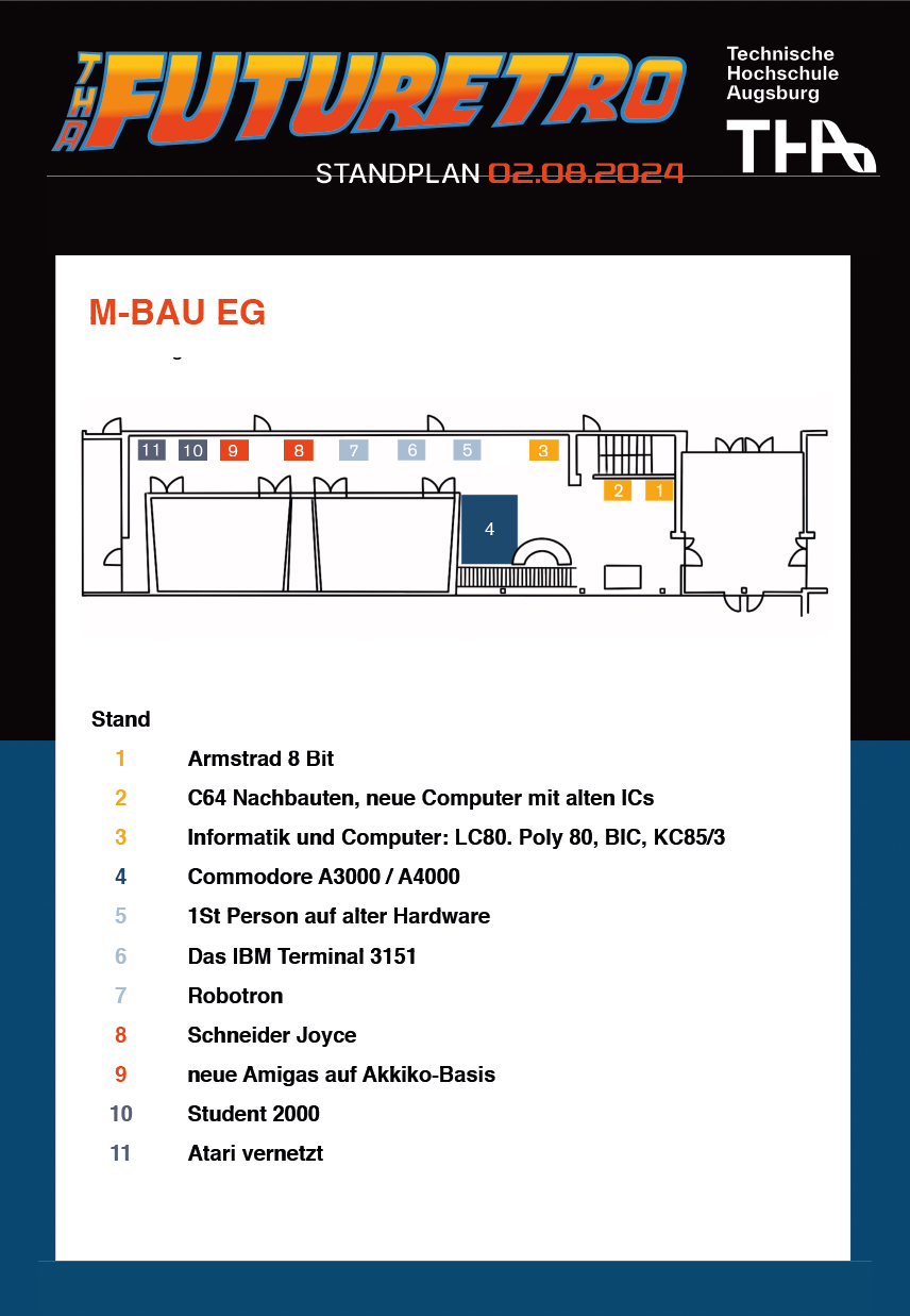 Die futuRETRO bringt Menschen zusammen, die sich für die kreative Nutzung historischer Computer und Rechenmaschinen interessieren. Mit futuRETRO 2025 laden wir Sie zu Vorträgen, Workshops, Austausch, Diskussionen und zum Erleben historischer Hardware und Software an der Fakultät für Informatik der Technischen Hochschule Augsburg ein.