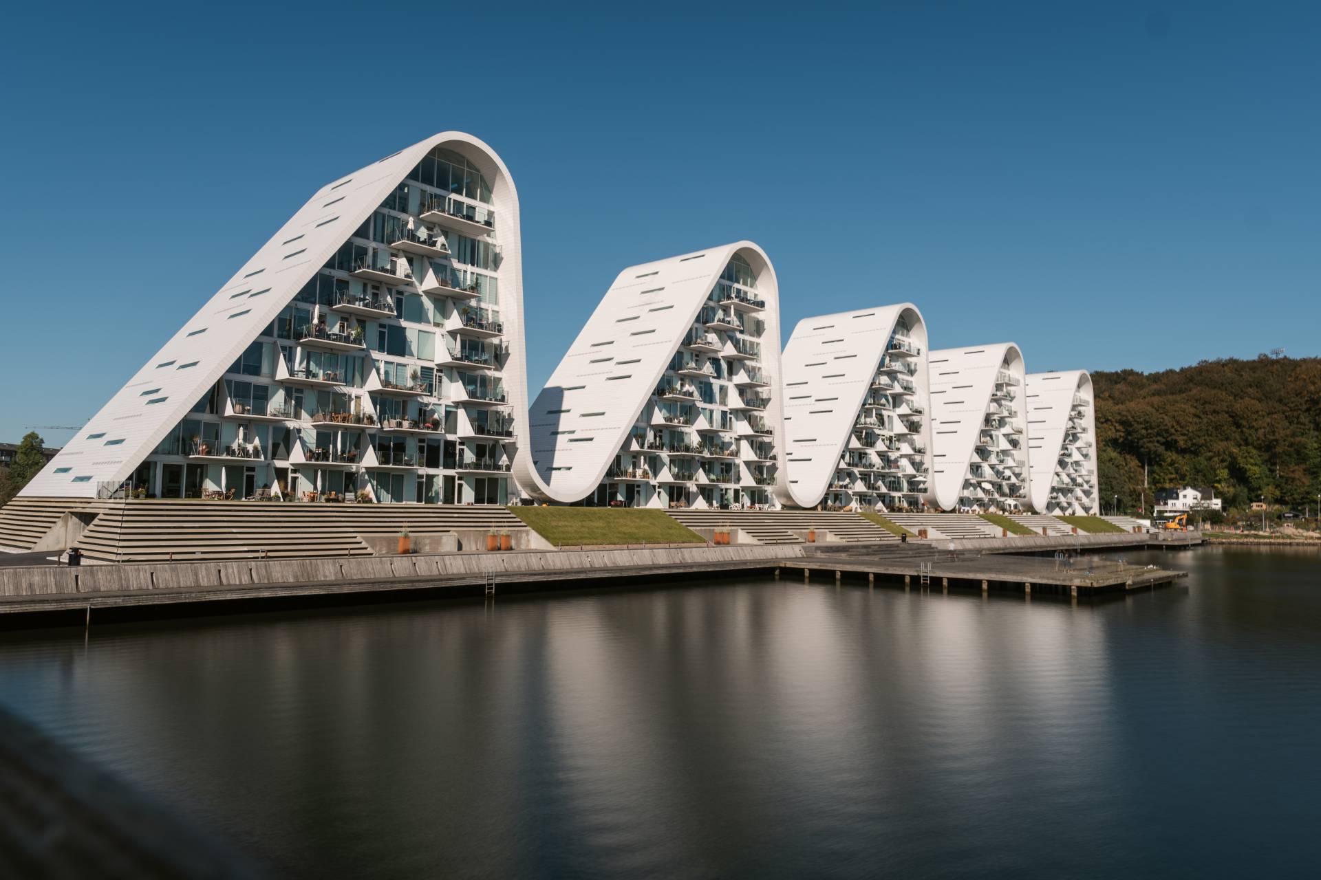 Zwei der schönsten Gebäude in Vejle sind The Weave (dänisch: Bølgen) und das Fjordenhus. The Wave ist ein Apartmentkomplex das vom Sydney Opera House, welches vom dänischen Architekten Jørn Utzon entworfen wurde, und der hügeligen Landschaft rund um die Stadt inspiriert wurde. Im direkt im Wasser erbauten Fjordenhus können verschiedene Attraktionen wie Lichtspiele im Wasser bei Nacht oder Spiegel an der Decke bewundert werden. Neben diesen architektonischen Spielereien beherbergt das Gebäude auch das neue Hauptquartier von Kirk Kapital, einer dänischen Investmentunternehmung. Das 2018 eröffnete Gebäude ist eine eindrucksvolle Verbindung zwischen Meer und Stadt und Kunst und Industrie.