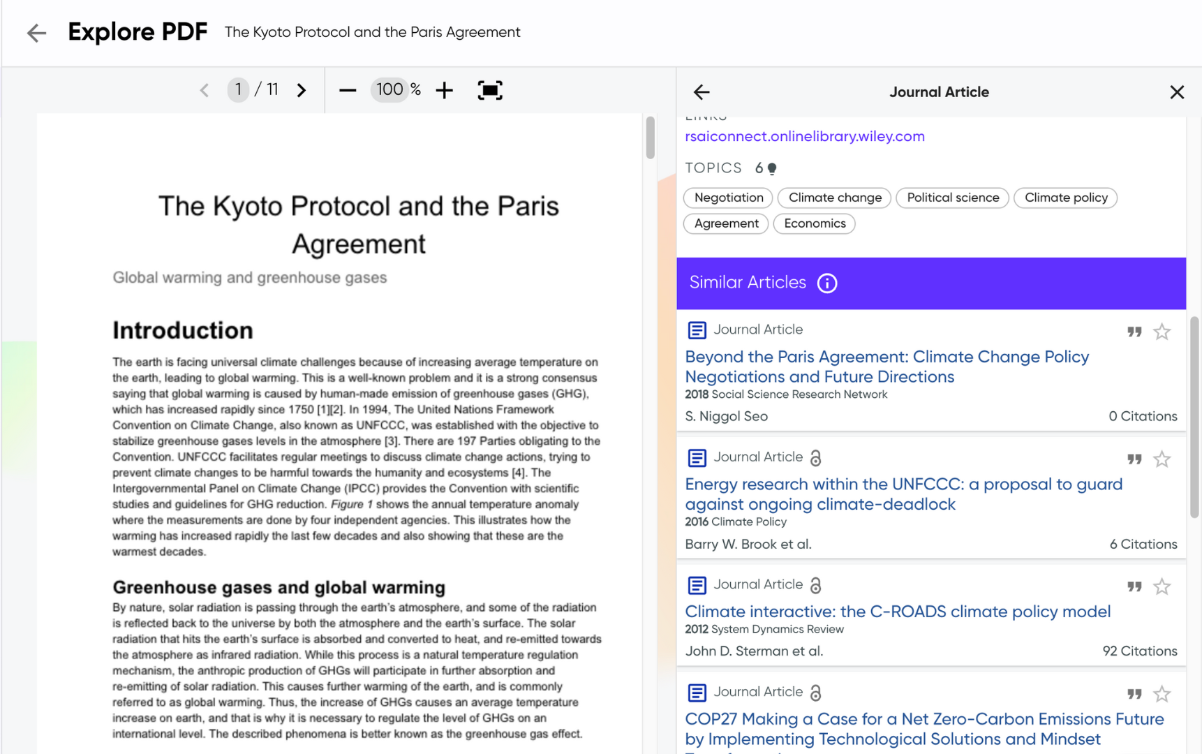 - Suche nach ähnlichen Artikeln: Es werden ähnliche und relevante Artikel basierend auf dem analysierten Dokument/Text vorgeschlagen.