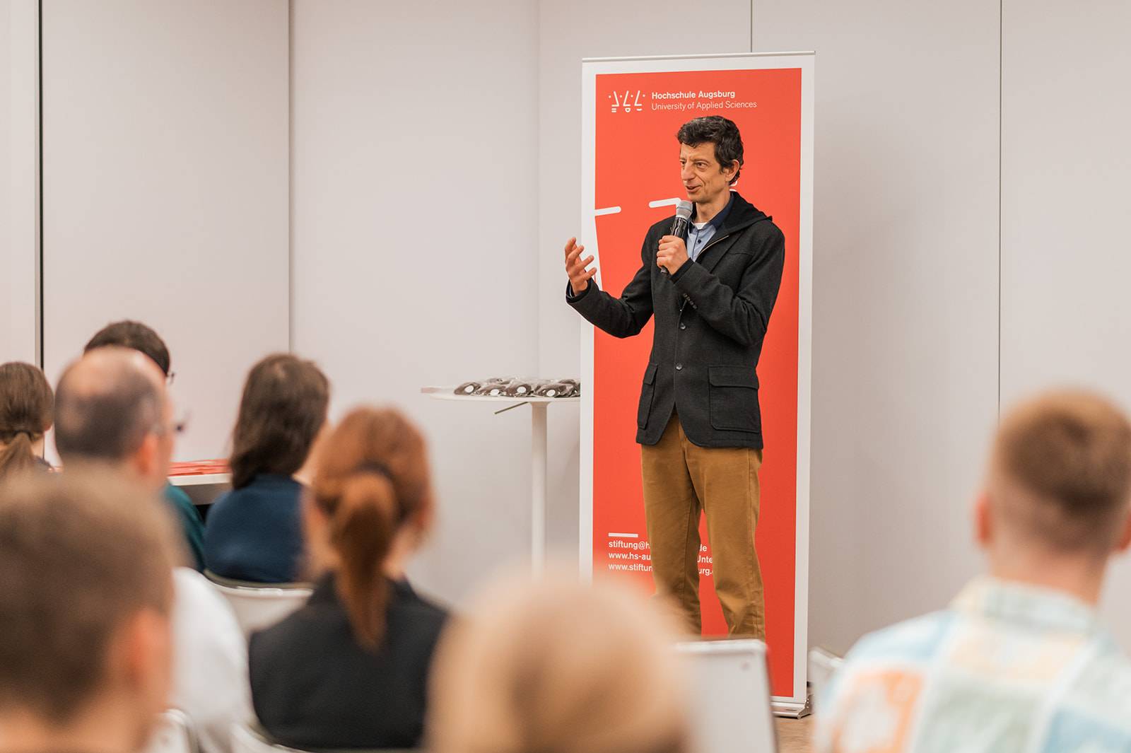 Prof. Dr. László Kovács, Vizepräsident für Studium und Lehre der Hochschule Augsburg, gratulierte den Stipendiat:innen und bedankte sich bei den Stipendiengeber:innen: „Mit Ihrem Engagement unterstützen Sie Studierende, die sich durch hervorragende Studienleistungen, Talent und außerordentliches Engagement auszeichnen. Damit leisten Sie einen wertvollen Beitrag zur Fachkräftesicherung in der Region.“ Kovács forderte Stipendiat:innen und Förder:innen auf, miteinander in den Dialog zu treten: Auch die ideelle Förderung der zukünftigen gefragten Persönlichkeiten sei eine wesentliche Säule beider Stipendienprogramme.