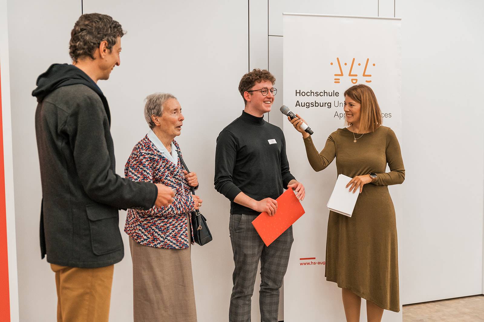 Zwischen der Hochschule und den Stipendiengeber:innen besteht eine gute und enge Kooperation: Viele engagieren sich schon seit Jahren in der Förderung von Studierenden, unter anderem mit dem Ziel, „kluge Köpfe“ – die Fachkräfte von morgen – für eine spätere Karriere in ihren Unternehmen zu begeistern. So unterstützen die Grenzebach Maschinenbau GmbH, die Josef Hebel GmbH & CO. KG und die Ferchau GmbH bereits seit zehn Jahren Studierende mit Stipendien, ebenso der Förderverein für die Hochschule Augsburg. Neu sind heuer die Check24 Vergleichsportal Mietwagen GmbH, die Wacker Chemie AG und die Xitaso GmbH als Stipendiengeber:innen hinzugekommen. Eine Besonderheit ist in diesem Jahr, dass es zwei Stipendien für Studierende aus der Ukraine gibt. Sie werden von der Förderstiftung für die Hochschule Augsburg gestiftet.