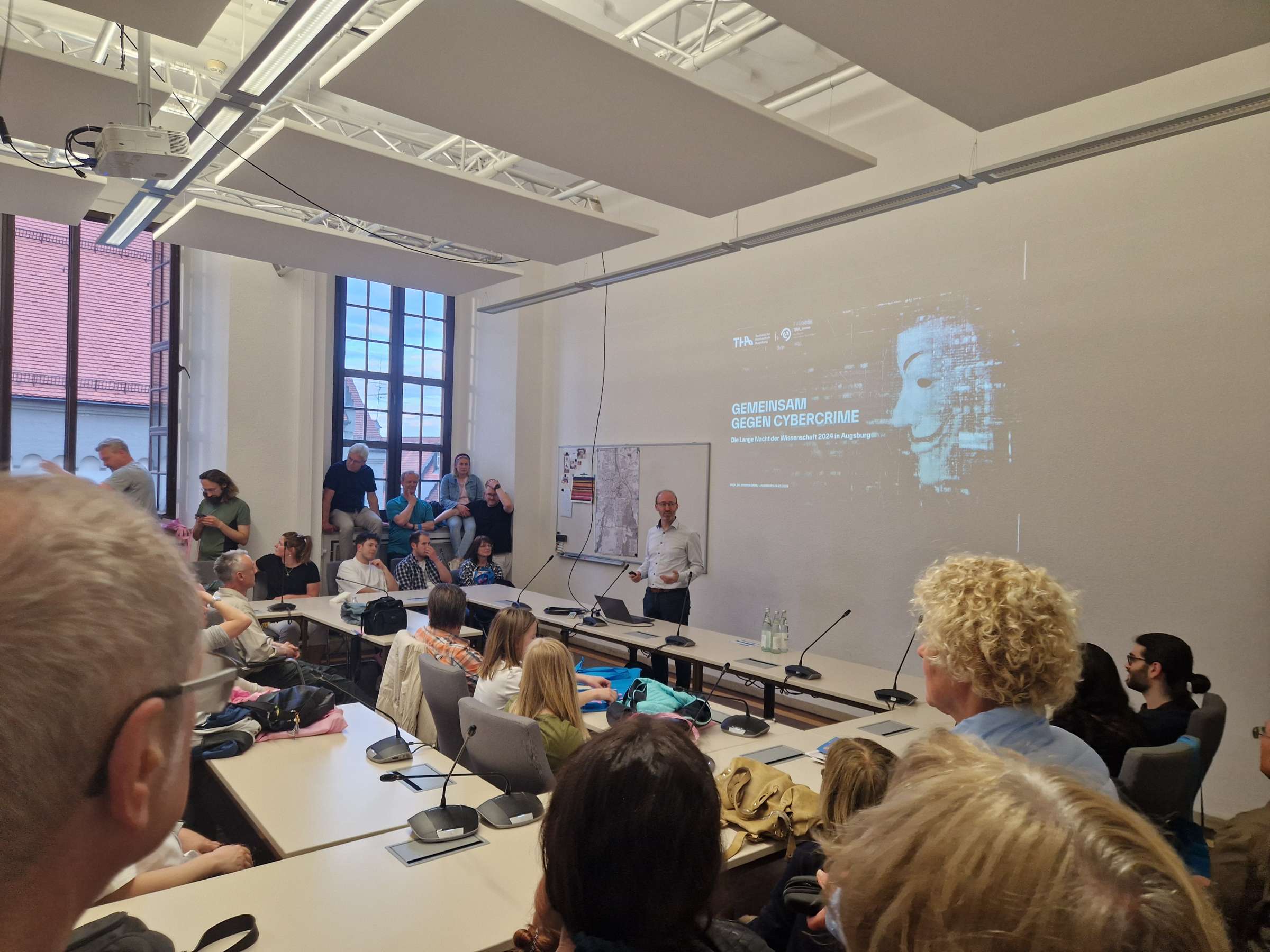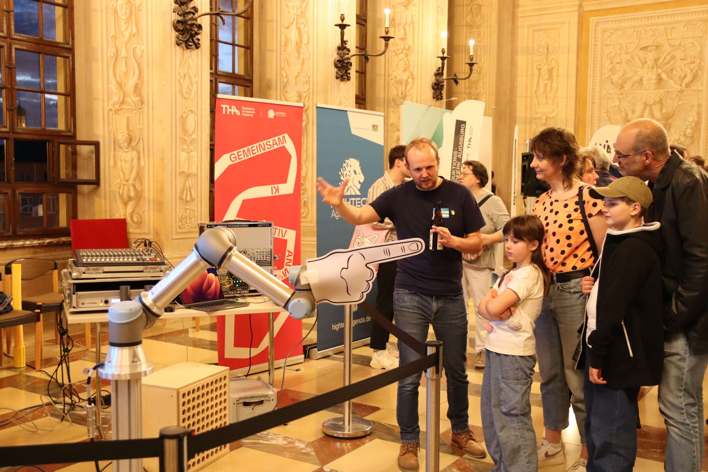 Der Andrang bei der Langen Nacht der Wissenschaft war so groß, dass sich vor dem Rathaus eine Menschenschlange bis fast zum Moritzplatz bildete. Das Interesse an der Forschung der beiden Augsburger Hochschulen am vergangenen Samstag war immens – und wurde dank vieler Kolleginnen und Kollegen weiter verstärkt. Mehr als 80 Forschende, Lehrende und Studierende waren an 14 Ständen, bei acht Vorträgen und beim Science Slam für die Wissenschaft und für die THA im Einsatz.
