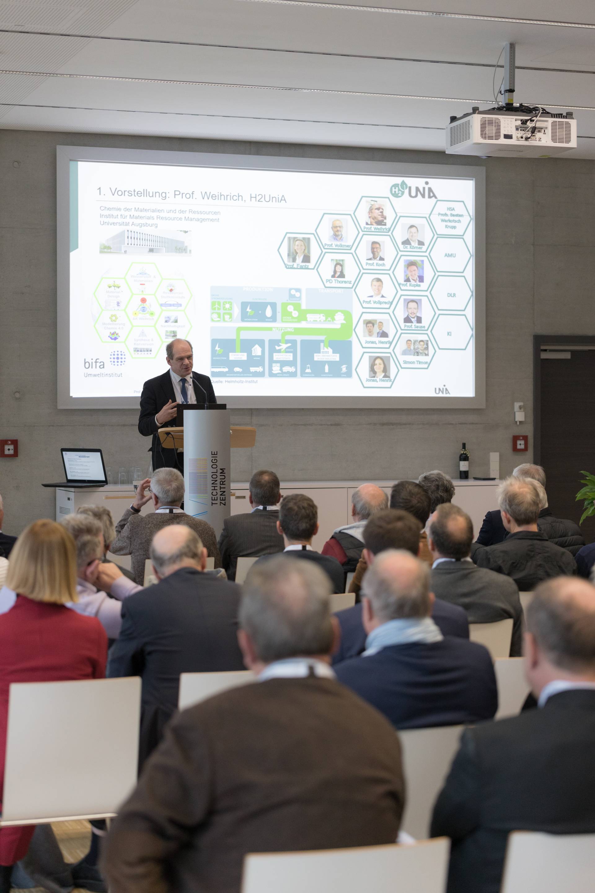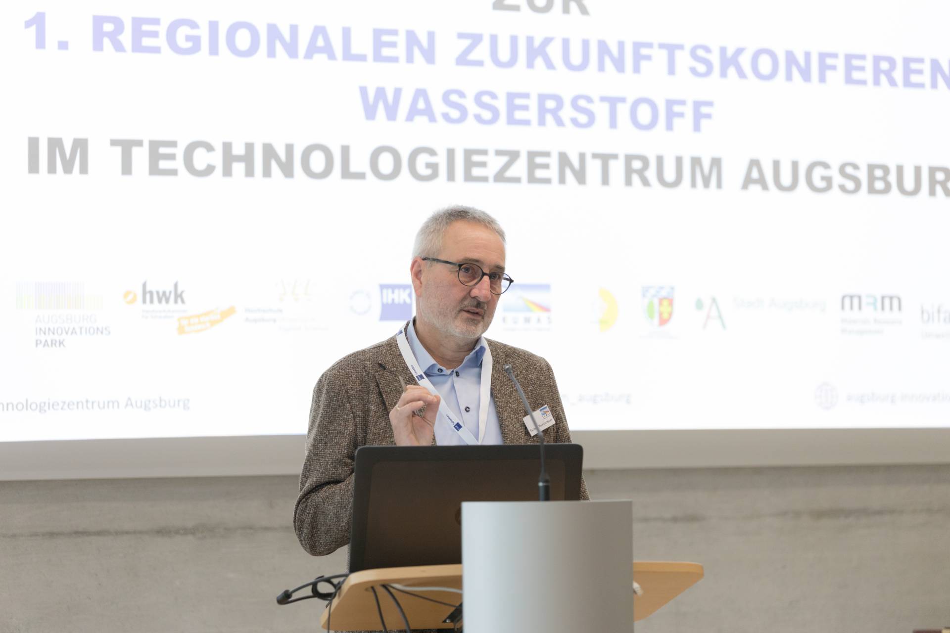 Die Zukunftskonferenz wurde organisiert vom Arbeitskreis Wasserstoff, auf Initiative von Mara Blaser (Stadt Augsburg, Wirtschaftsreferat), Dr. Andreas Huber (Stadt Augsburg, Wirtschaftsförderung), Thomas Nieborowsky (KUMAS) und Wolfgang Hehl (Technologiezentrum Augsburg) und unter Mitwirkung von Prof. Dr. Nadine Warkotsch (Hochschule Augsburg), Prof. Dr. Richard Weihrich (Universität Augsburg und bifa), Dr. Kristin Wirth (IHK Schwaben), Knuth Ensenmeier (HWK für Schwaben), Herwig Leiter (Landkreis Augsburg) und Stefanie Schmaus (Landkreis Aichach-Friedberg). Ziel des Arbeitskreises ist es, die regionale Teilhabe an Wasserstofftechnologien zu planen und in der Region zu verankern. „Ich bin sehr stolz darauf, dass wir in Augsburg ein so starkes und motiviertes Netzwerk haben. Dies ist die beste Basis auf dem Weg zu einer innovativen Wasserstoffregion“, so Dr. Wolfgang Hübschle, Wirtschaftsreferent der Stadt Augsburg anlässlich der „1. Regionalen Zukunftskonferenz Wasserstoff“.