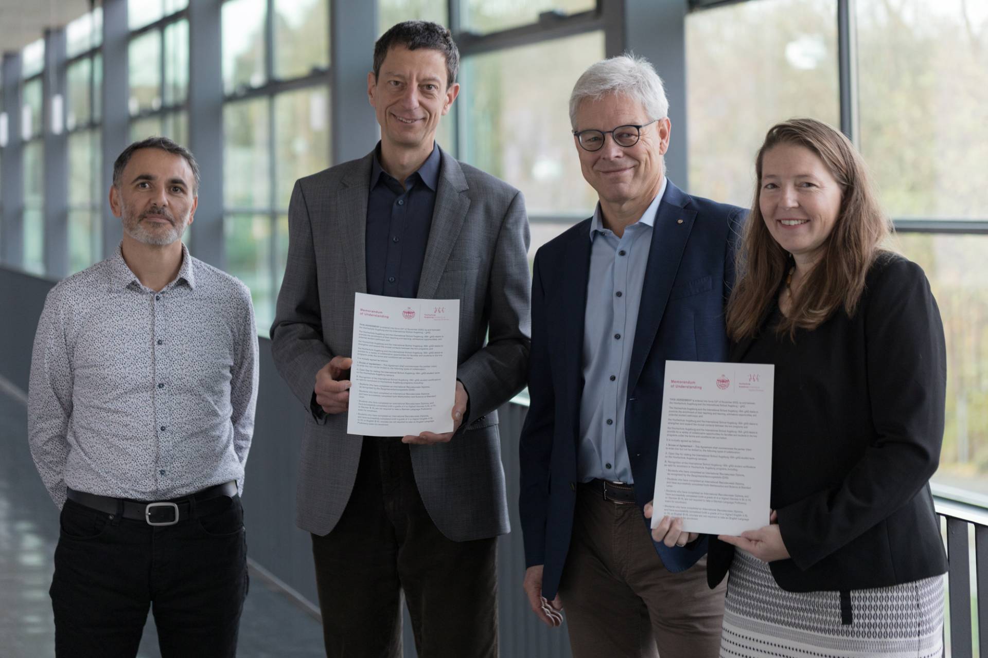 Die International School Augsburg und die Hochschule Augsburg planen die Stärkung und den Ausbau der gegenseitigen Kontakte – eine Kooperation, von der beide Seiten profitieren sollen und durch die Lehren und Lernen an beiden Einrichtungen gefördert werden soll. Dazu unterzeichneten Prof. Dr. László Kovács, Vizepräsident für Studium und Lehre der Hochschule Augsburg, und Dr. Jessamine Koenig, Director of Education der International School Augsburg, sowie Marcus Wagner, Director of Business and Finance der International School Augsburg, Ende des vergangenen Jahres ein Memorandum of Understanding.