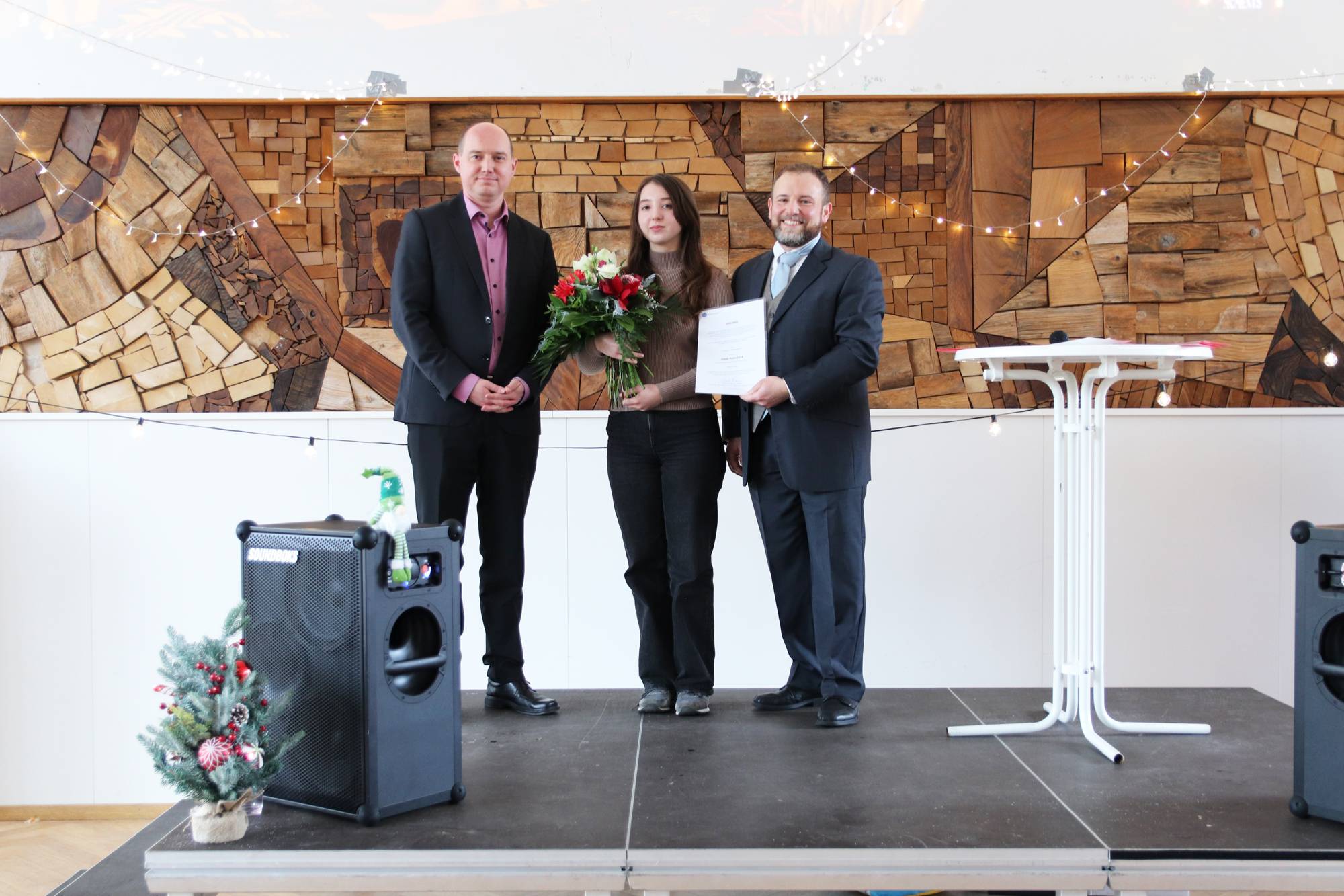 Dominik Maas, Leiter des International Office, gratulierte der aus der Ukraine stammenden Studentin stellvertretend für das gesamte Hochschulteam und überreichte ihr die Urkunde. Prof. Matthias Kolonko hielt die Laudatio auf die Preisträgerin. In seiner Rede betonte er nicht nur die herausragenden akademischen Leistungen von Oleksandra Suzik, sondern auch ihr exzellentes Niveau in der deutschen Sprache, was ihre erfolgreiche Integration in Deutschland maßgeblich unterstützt habe. Besonders hervorzuheben seien die außergewöhnlichen Erfolge, die Suzik während ihres Praktikums erzielt habe. Ihre Professionalität und Fachkompetenz seien sehr beeindruckend und sie habe damit gezeigt, dass sie bestens darauf vorbereitet sei, beruflich in Deutschland Fuß zu fassen.