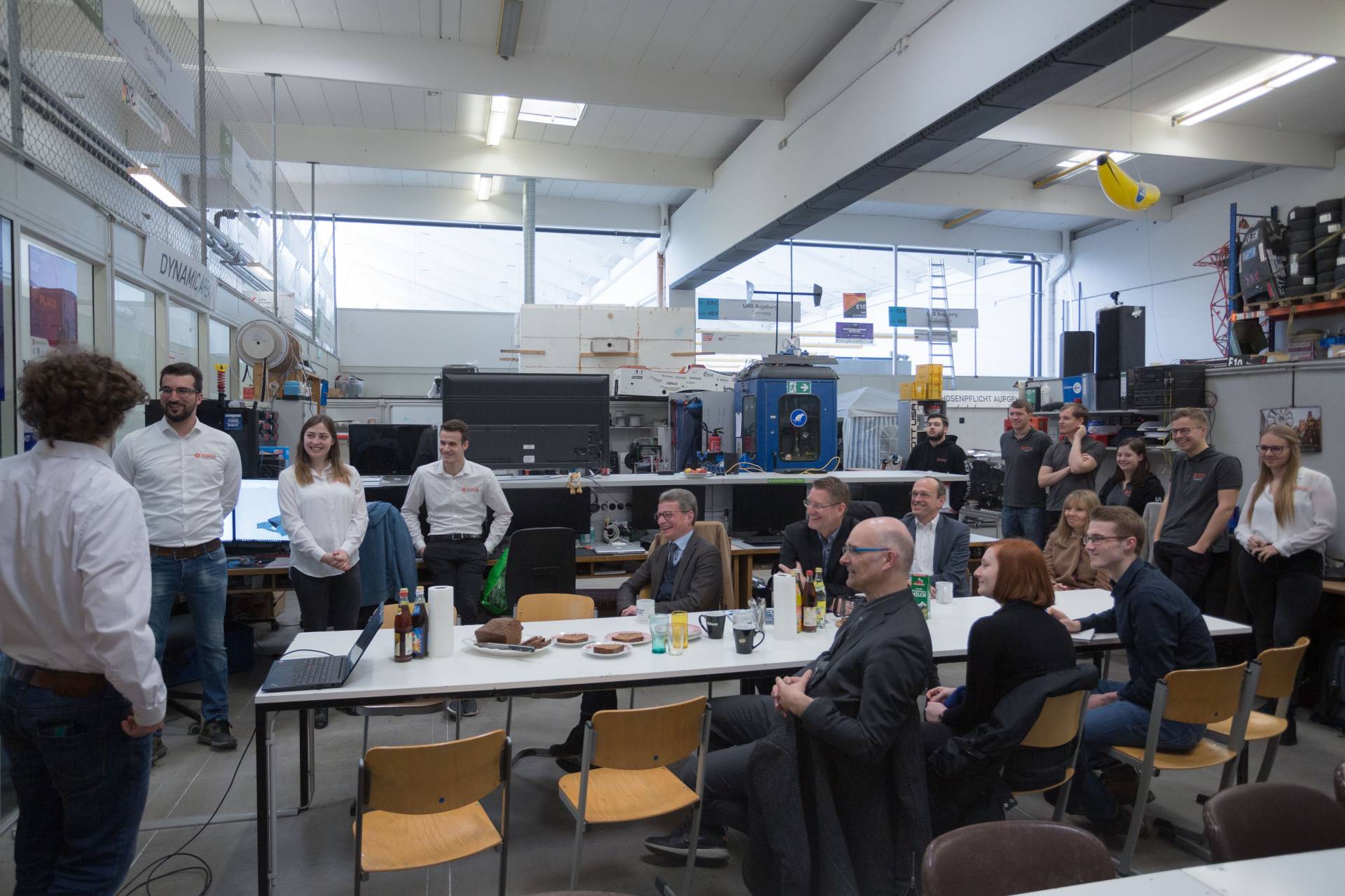 Nach der Begrüßung durch den Vorstand und einer Präsentation des Projekts wurde Minister Sibler durch die Werkstatt geführt. An verschiedenen Stationen wurden ihm Einblicke in die Arbeit des Formula Student Teams gewährt und er konnte selbst einen Eindruck davon gewinnen, was es heißt, einen Rennwagen zu bauen. Sibler äußerte sich zuversichtlich, dass das Starkstrom-Team auch weiterhin große Erfolge feiern und an der Spitze der Entwicklung im Bereich Autonomes Fahren sein wird.