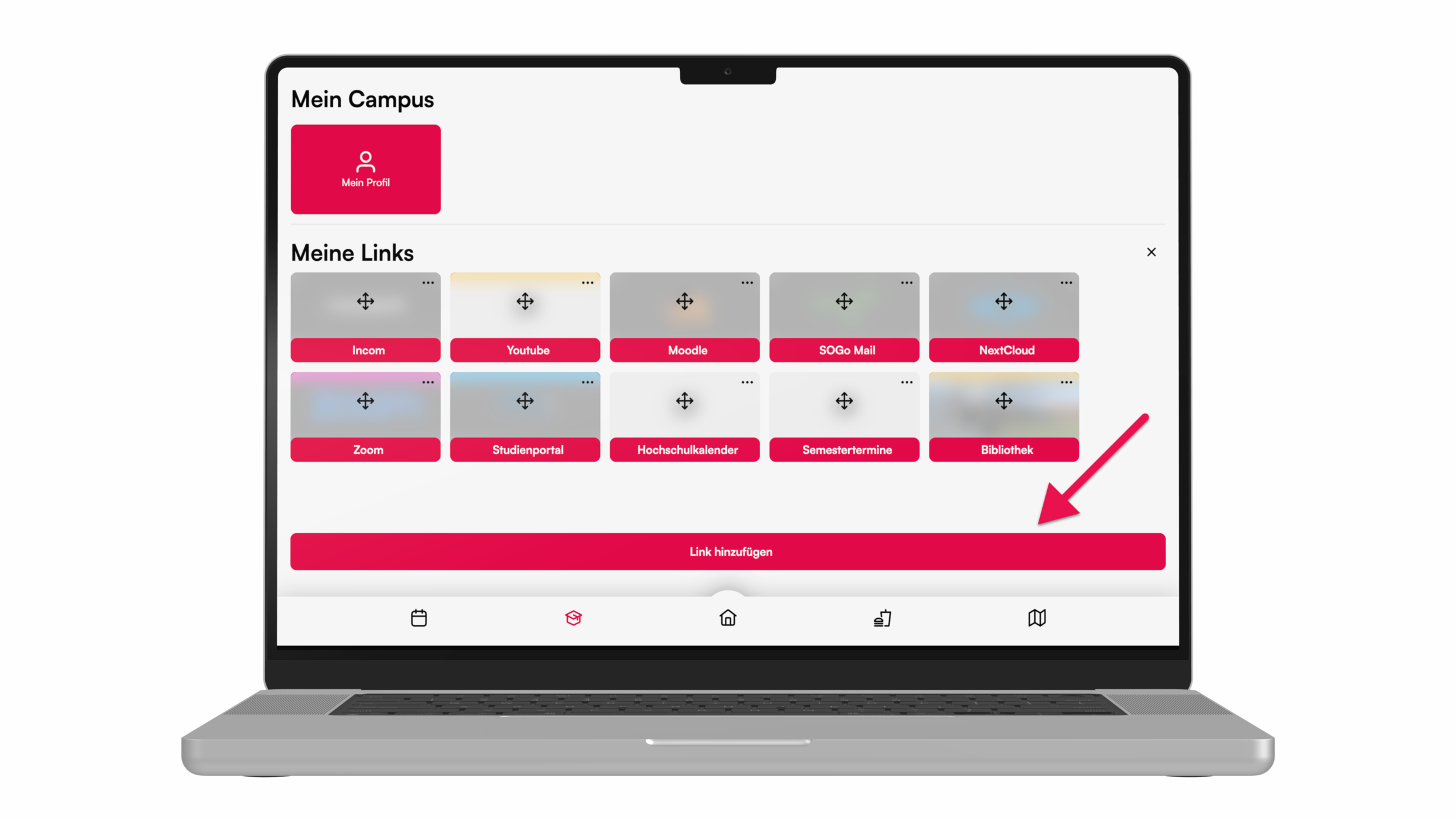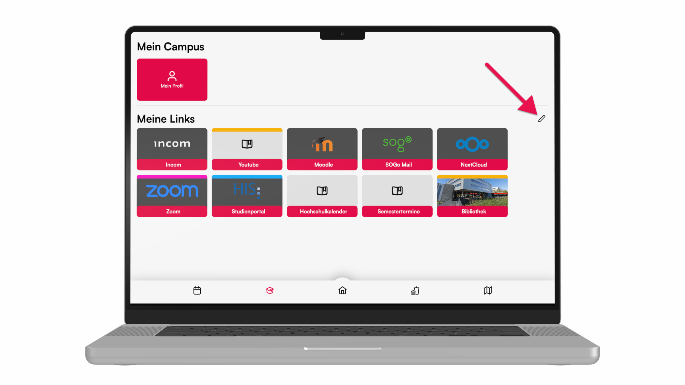 Die Linksammlung enthält wichtige Links der Hochschule und kann nach eigenen Wünschen angepasst werden. Dabei können unterschiedliche Optionen ausgewählt und geändert werden: