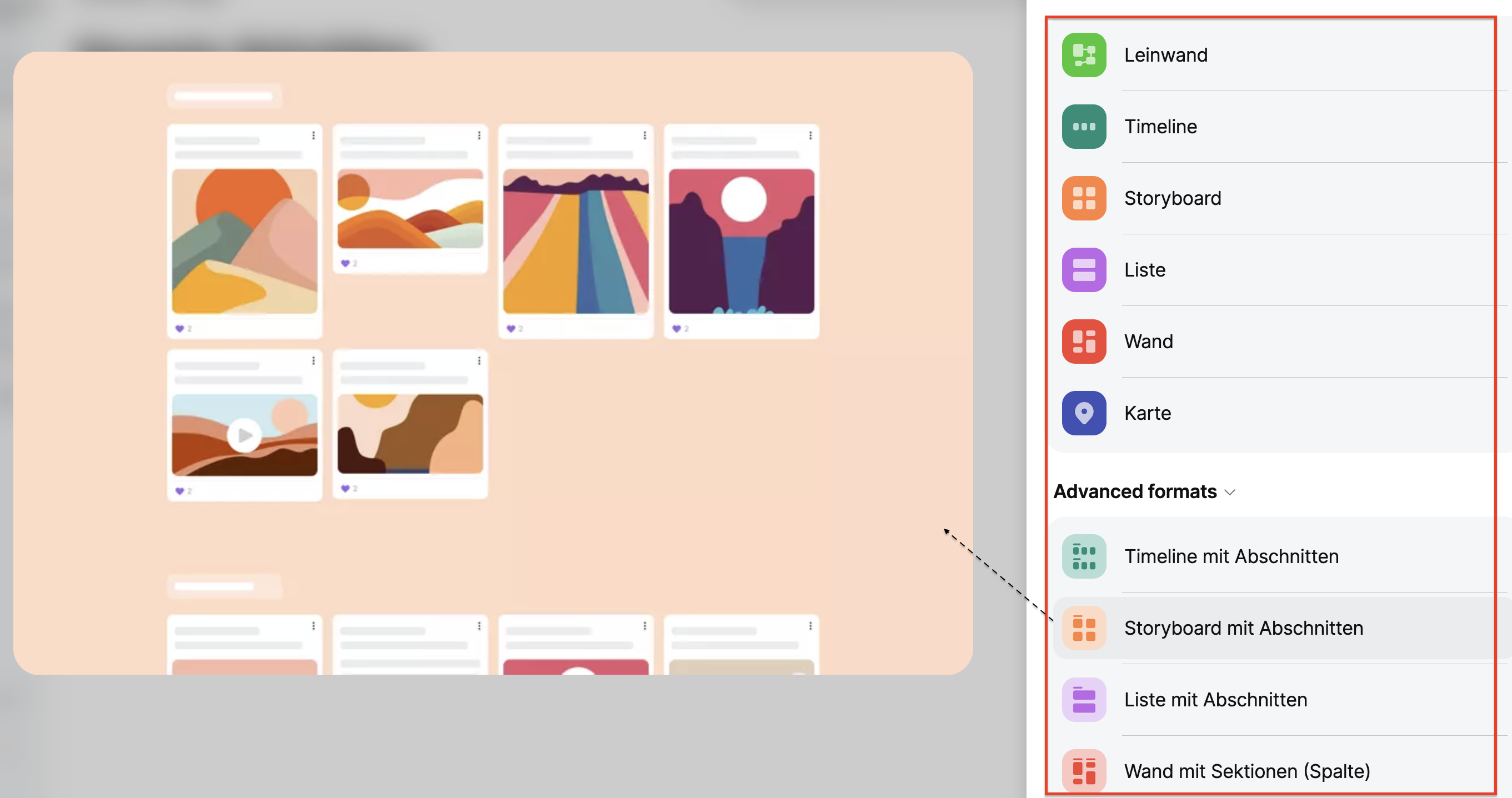 Padlet bietet eine Auswahl an verschiedenen Vorlagen für die Strukturierung der Inhalte.