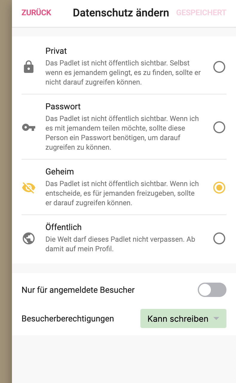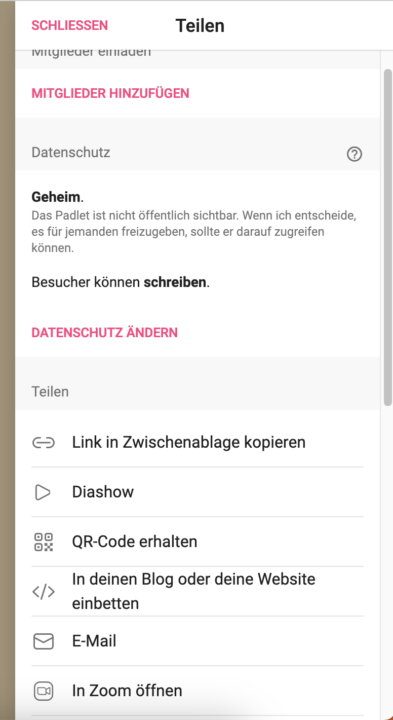 Mit einem Einladungslink können weitere Personen ohne Registrierung an der geteilten Pinnwand teilnehmen und Inhalte hinzufügen, kommentieren oder bewerten.