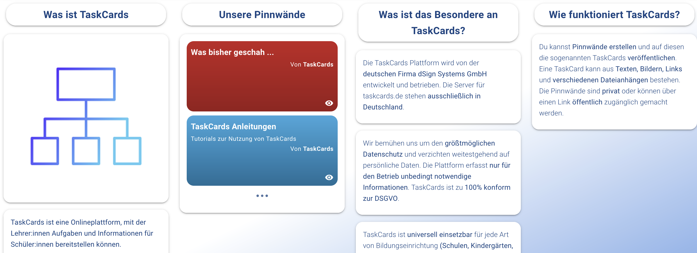- Kollaborative Projekte: Förderung von Gruppenarbeit durch gemeinsame Pinnwände für Ideensammlung, Ressourcenteilung und Zusammenarbeit.